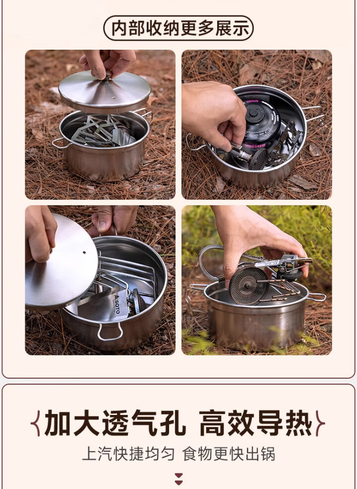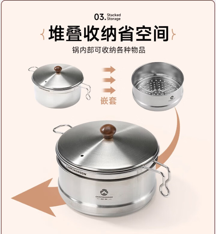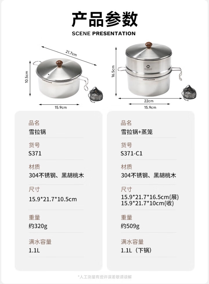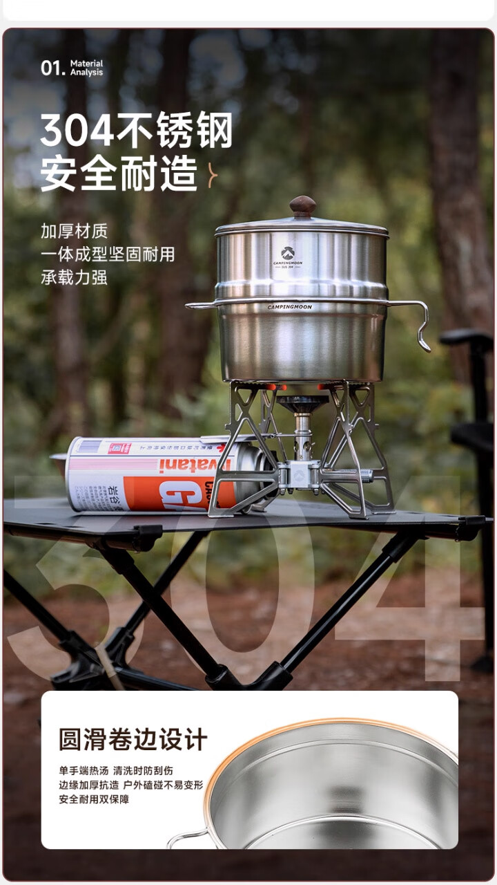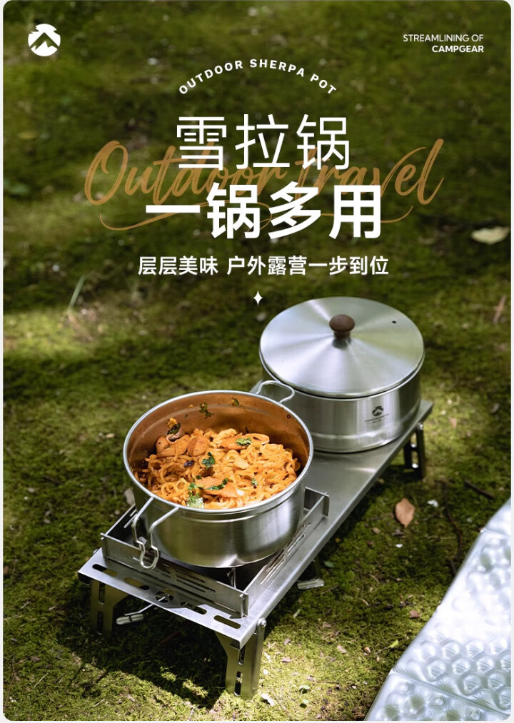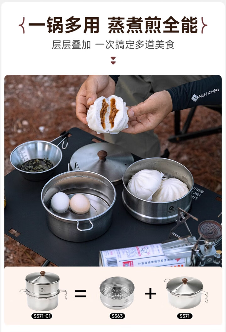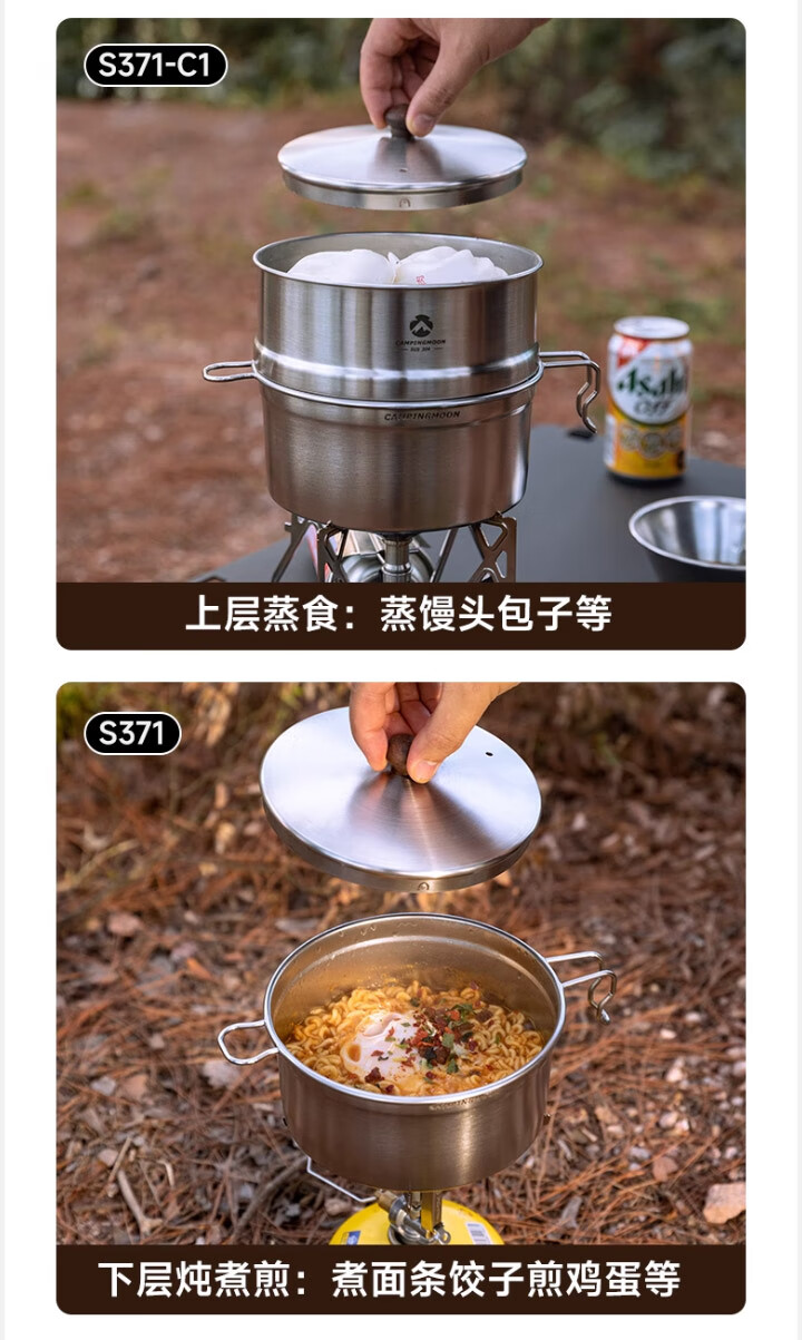 柯曼泡面锅雪拉锅套装户外野营烧水做饭炊具露营厨具雪拉锅S371 【S371雪拉锅+S363雪拉蒸笼】