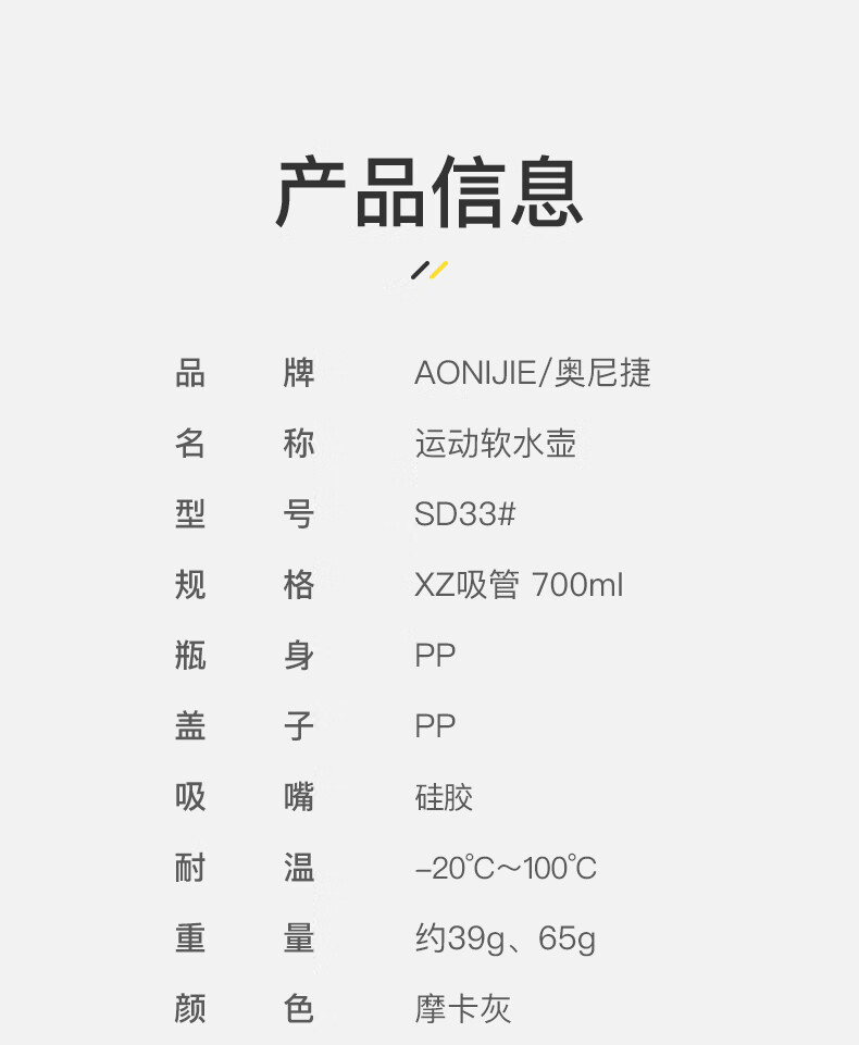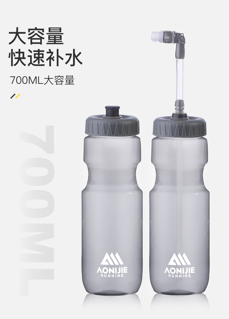 奥尼捷运动水壶700ml户外跑步马拉松便捷水杯骑行徒步挤压软水杯 摩卡灰700ml水壶(不含吸管)