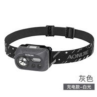 奥尼捷 户外感应头灯充电防水探照灯垂钓骑行夜跑露营照明灯跑步干电池 灰色(白光)充电款