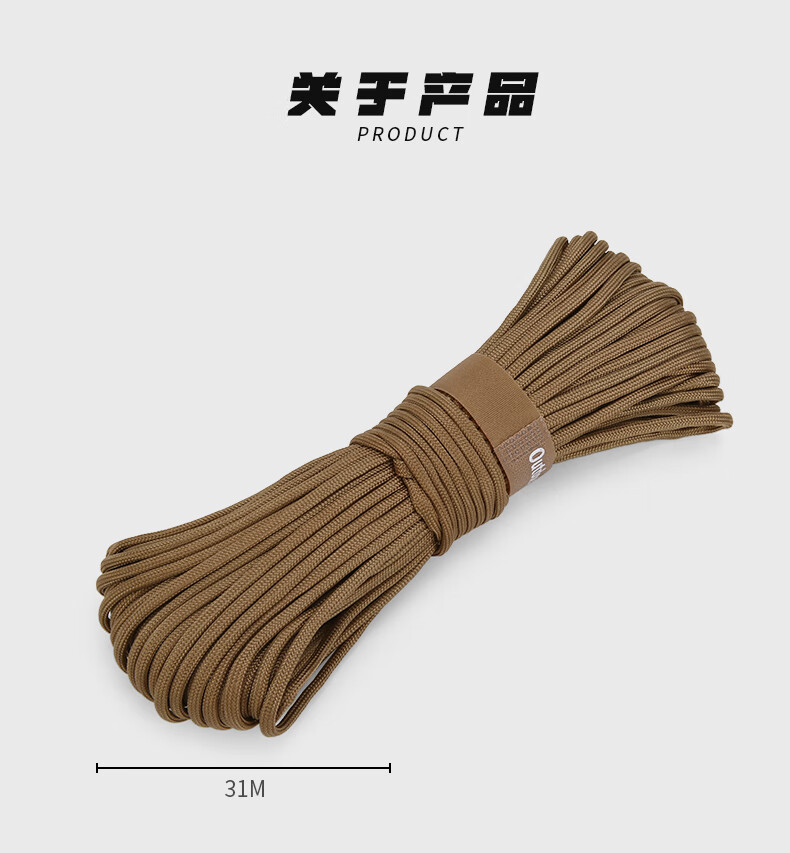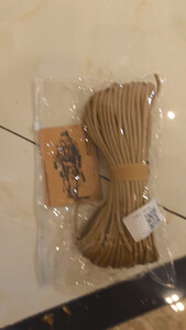 产品颜色:棕色的绳子, 尺码大小:十芯多功能伞绳, 适用场景:日常生活中一些捆绑包裹,或者户外加固遮阳帘都很好用。 其他特色:绳子比小拇指细,捆扎一些物品很方便,绳子结实耐用。满意!