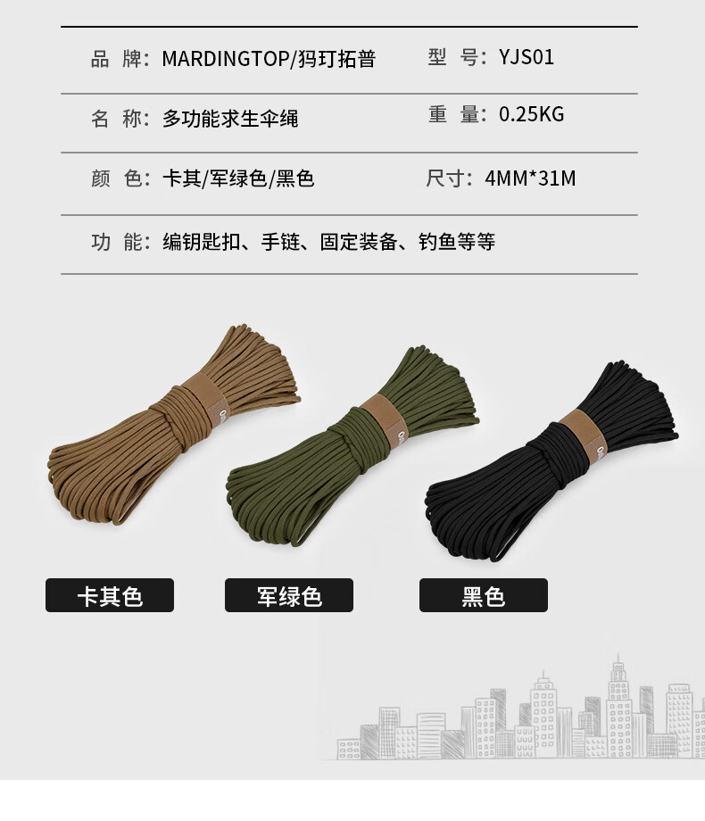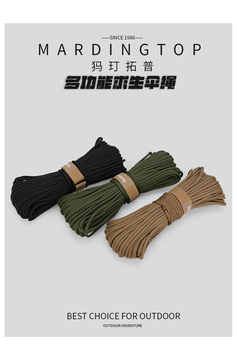 中国制造,就是耐造。Mardingtop品牌真是我们国货之光,性价比极高,做工用量品质绝对良心,对比国外老户外品牌可一点不差。十芯550伞绳露营应急绳户外引火绳功能求生手链编织绳,收到货先给斧子缠上真是太棒了。
