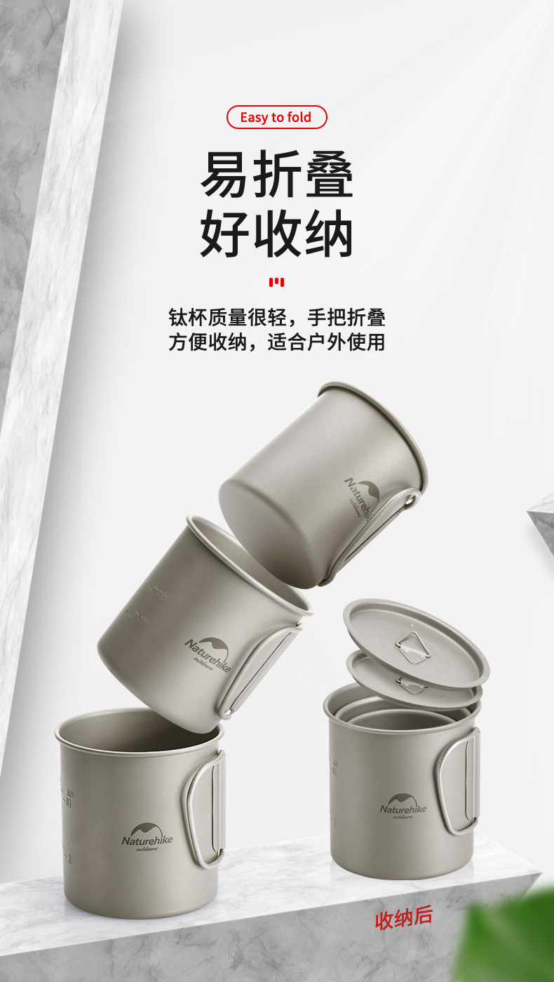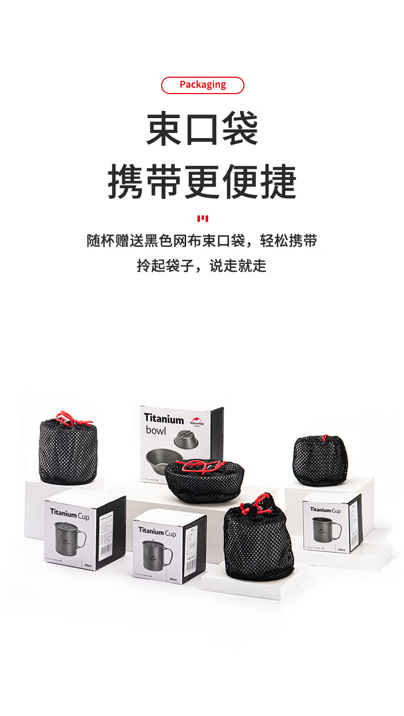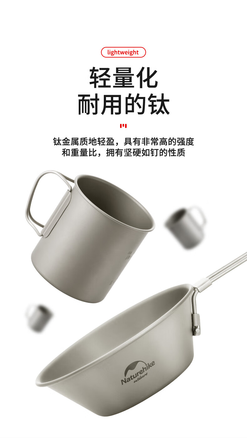 NatureHike挪客户外餐具钛杯钛碗 野餐餐具纯钛折叠水杯 可烧水便携式餐具 乐行钛杯 200ml
