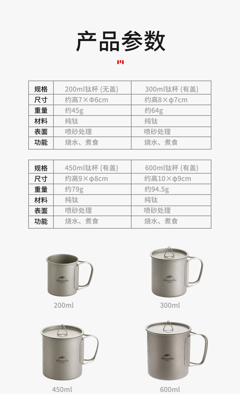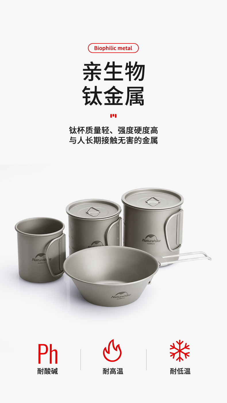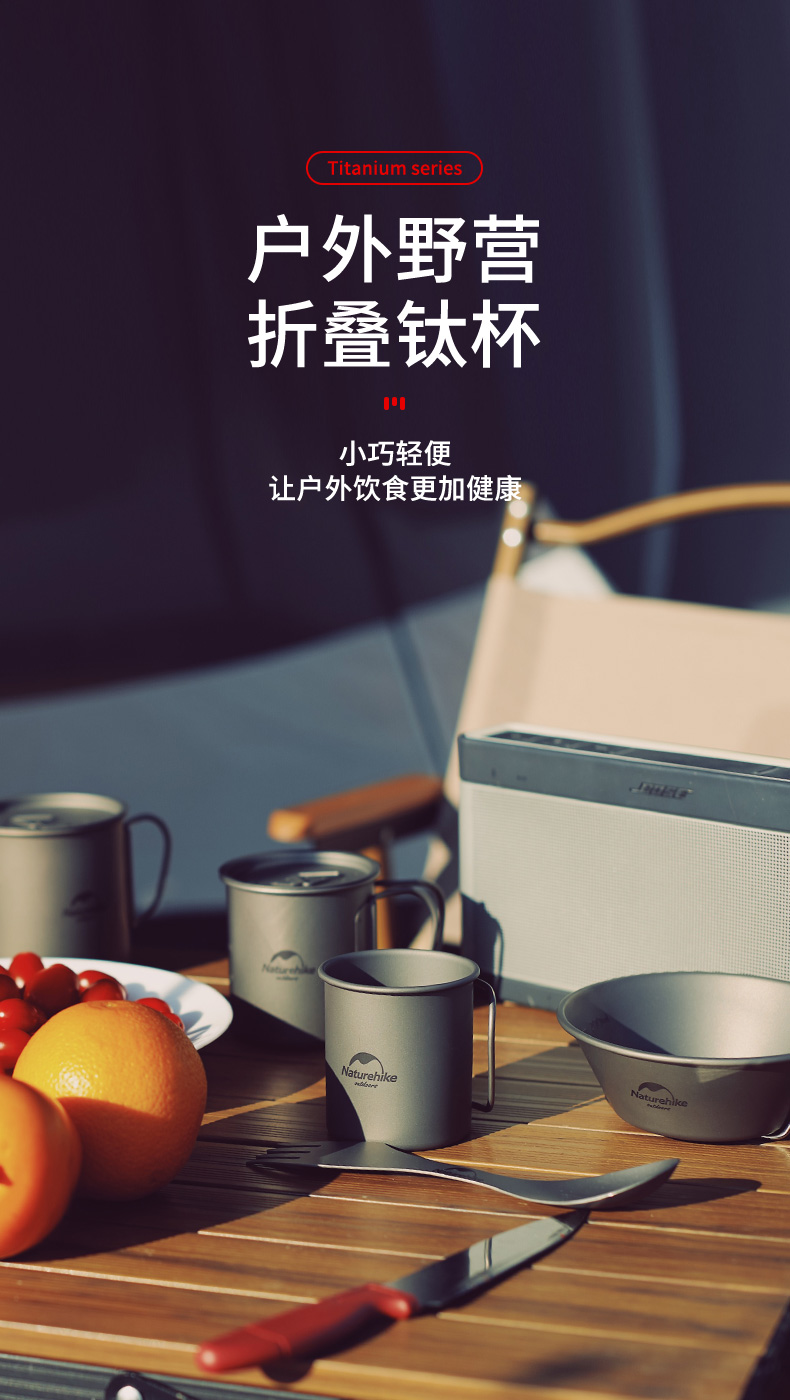 NatureHike挪客户外餐具钛杯钛碗 野餐餐具纯钛折叠水杯 可烧水便携式餐具 乐行钛杯 200ml