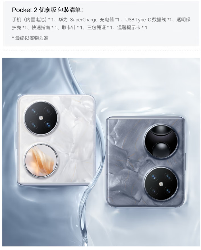 华为 Pocket 2 优享版 【全新未激活】超平整超可靠 全焦段XMAGE四摄 华为折叠手机 洛可可白 12GB+512GB