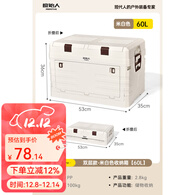 原始人户外收纳箱露营折叠箱储物箱子车载整理野营用品便携式折叠桌 60L米白色双层款【双盖板设计】