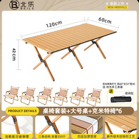 北乐户外便携式露营蛋卷桌可折叠桌椅子野餐摆摊桌椅野营野炊装备套装 木纹色大号【120cm】+克米特椅*6