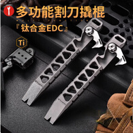 酷撼钛合金撬棍带割刀防身户外野营多功能EDC撬棒开瓶器拆箱起钉神器 石洗款