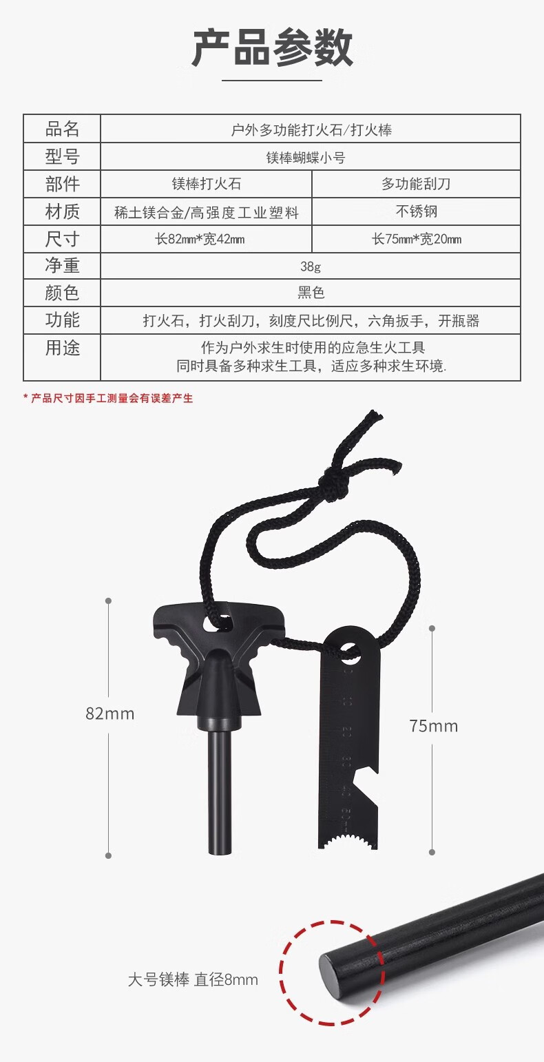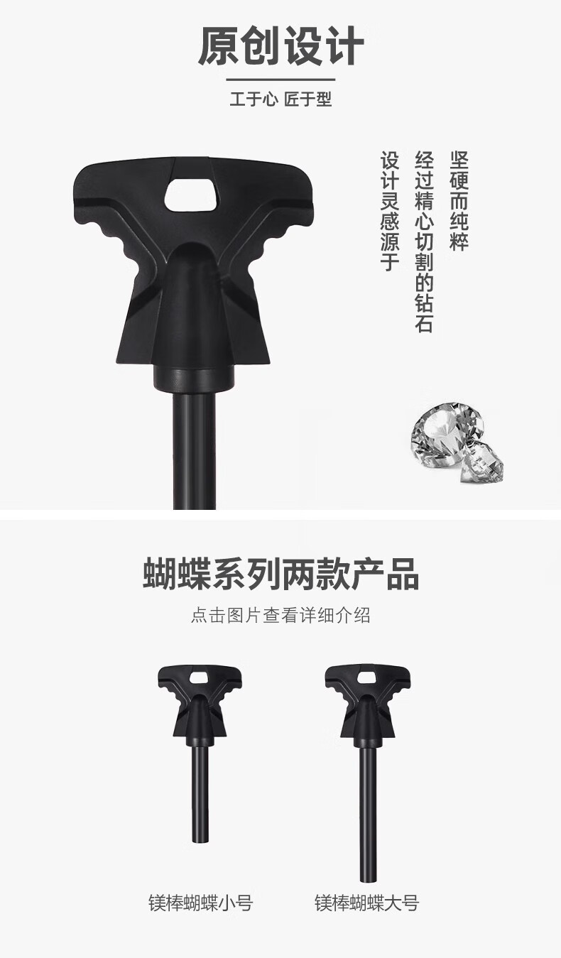野外求生打火棒蝴蝶型宽把手打火棒户外运动求生打火石打火镁棒 多功能打火棒1个装