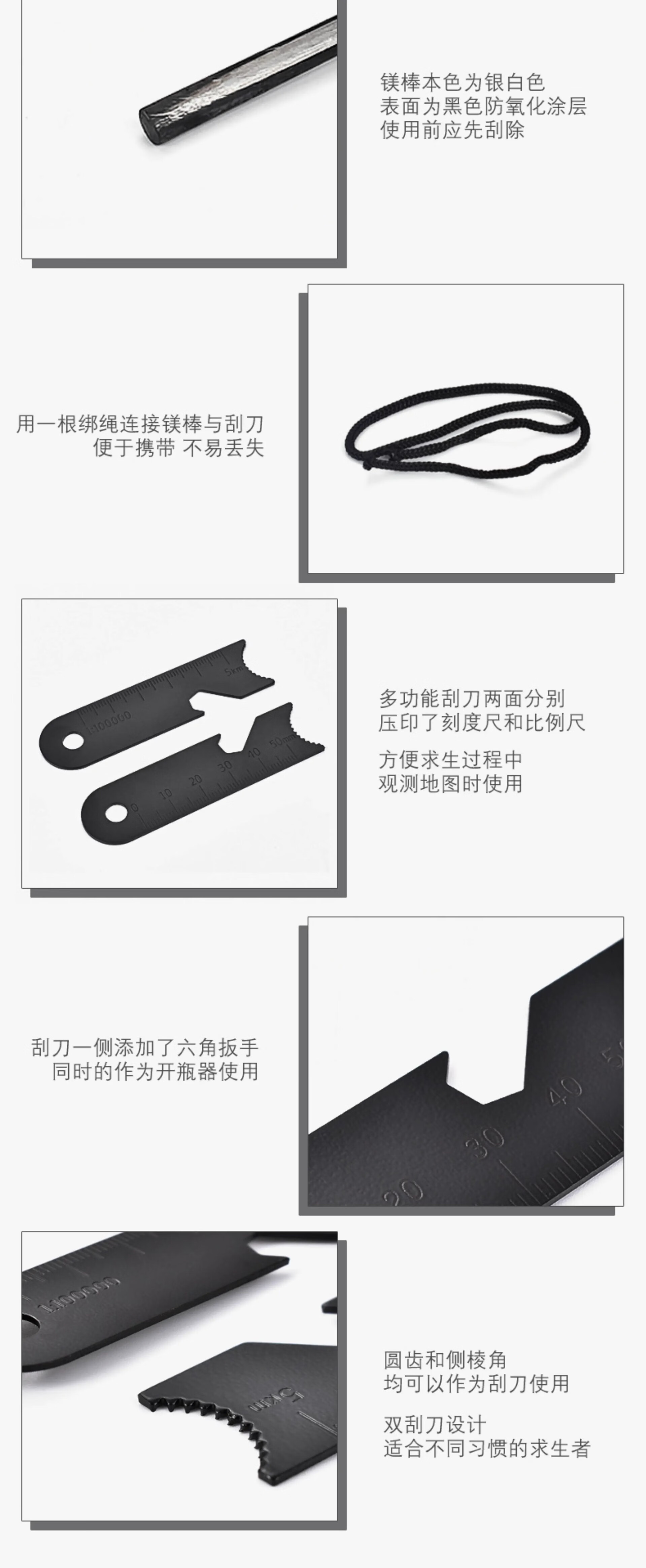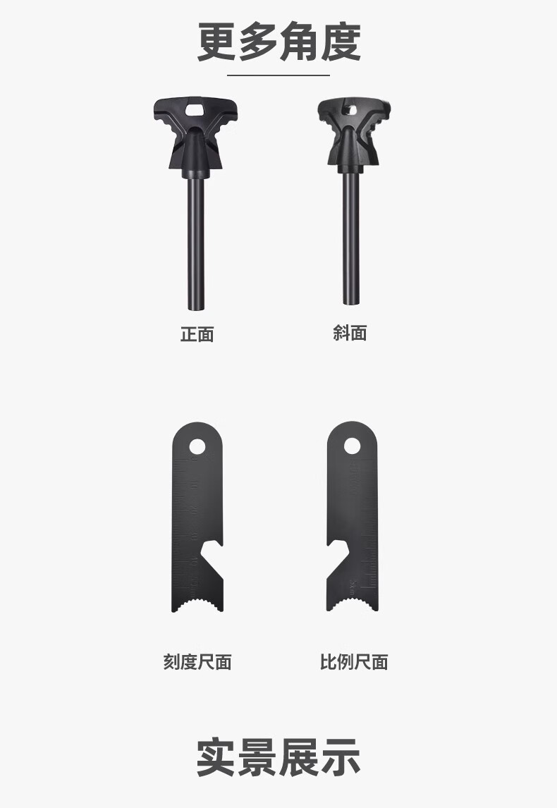 大家不要上当啊,这个打火棒坑人的很,看着是有直径7,8毫米一个棒,其实只有这个圆棒上镶了一个一毫米直径的是镁棒,其他的应该是铝的,根本打不着火,这种打火棒原来买过一次,整体都是镁棒,现在居然这样骗人.这种骗人的商家居然出现在京喜,真让人无语