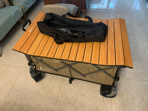 北欢 营地车露营车户外推车营地野餐手推车桌板野营拖车可折叠拉杆车 【黑色】+两件套+木纹桌板