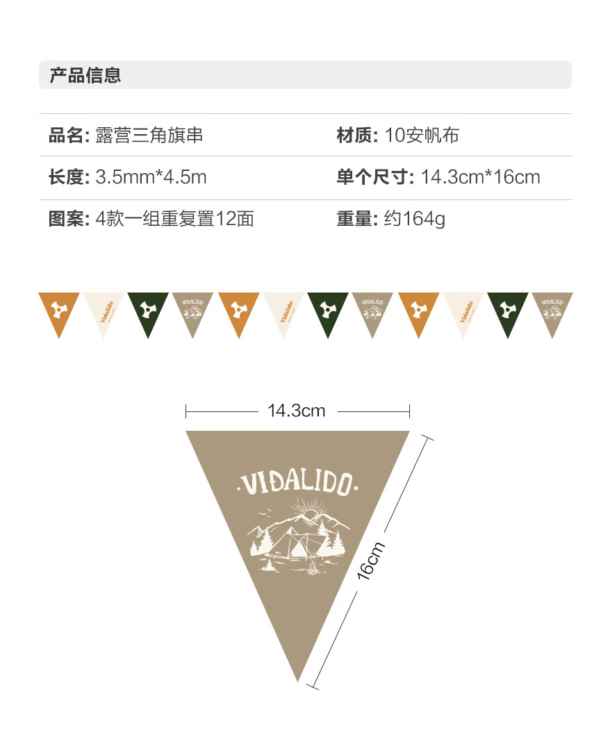 vidalido维达利多户外露营彩旗营地旗三角挂旗串氛围感装饰品风绳旗帜定制 三角挂旗旗串