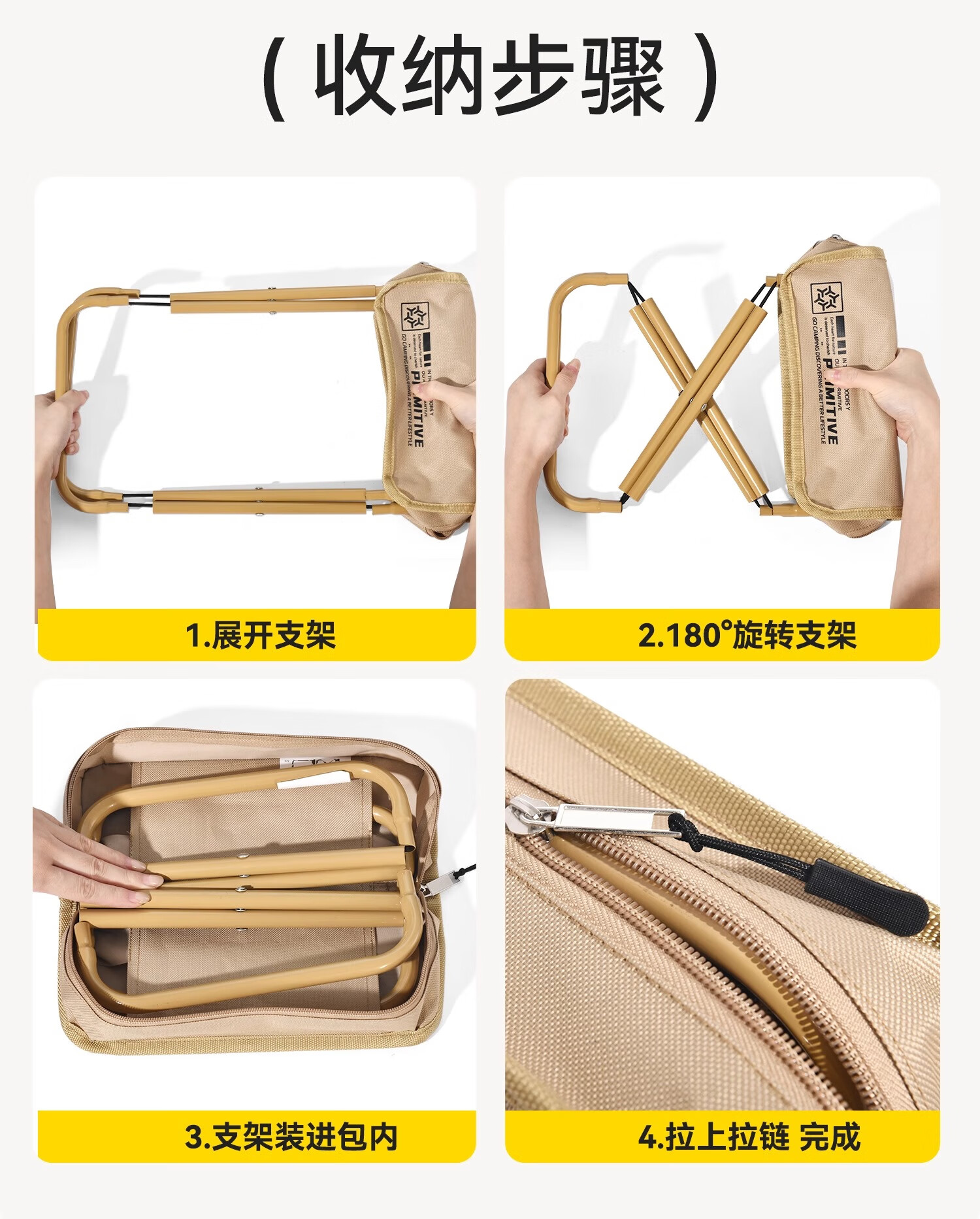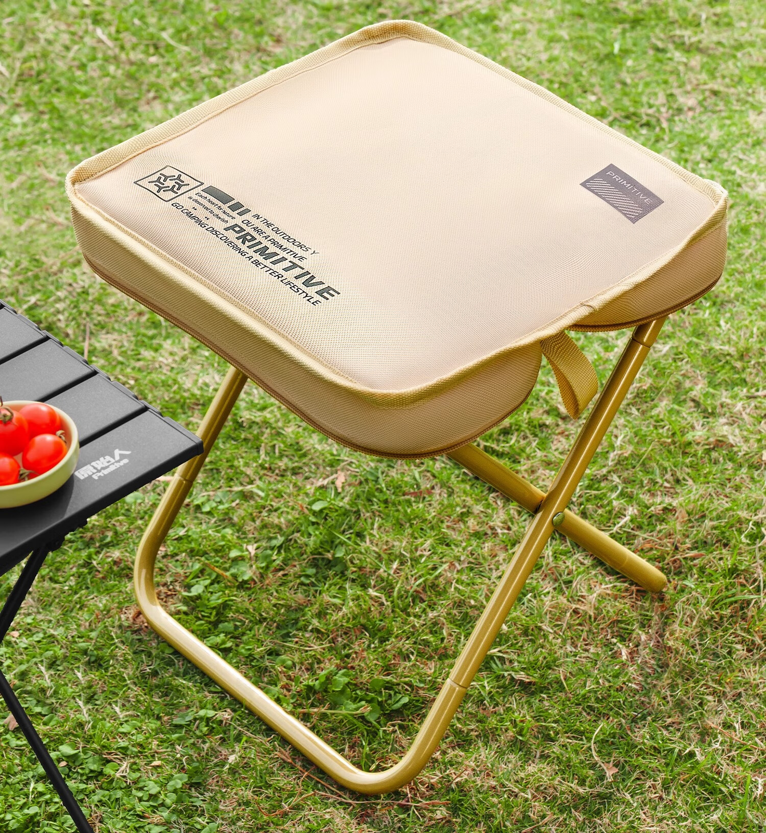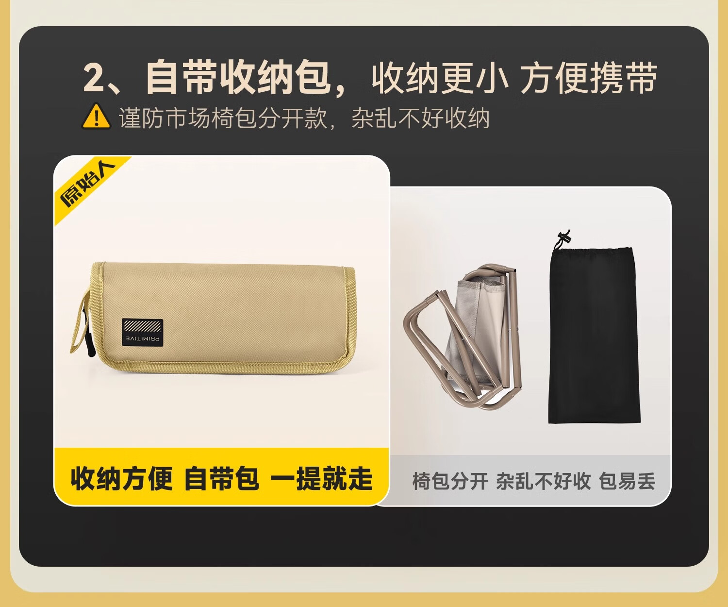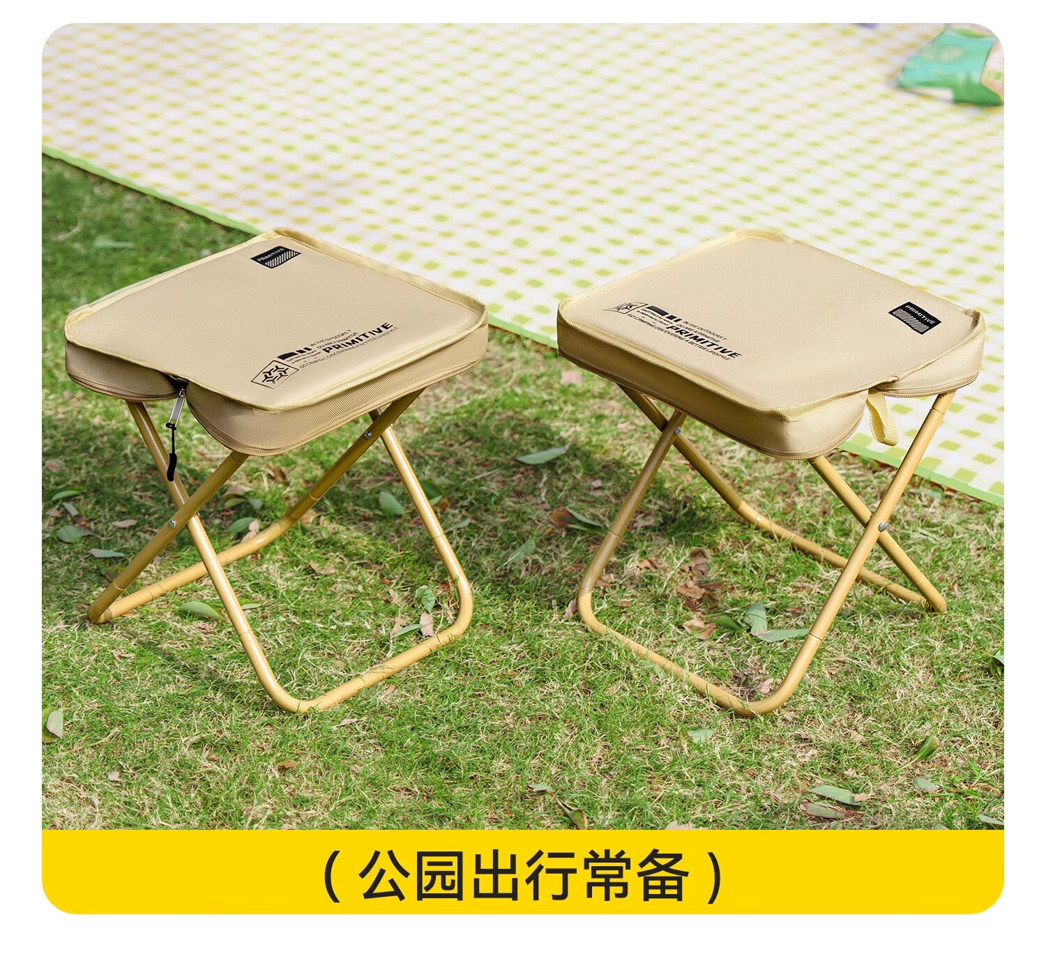原始人折叠凳子户外折叠椅便携式小马扎露营钓鱼排队神器小板凳野餐笔袋 卡其中号-超轻便携 超强承重