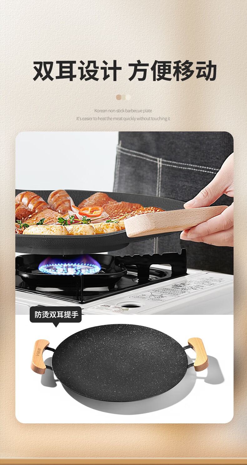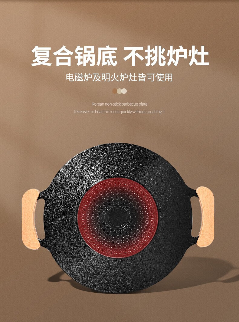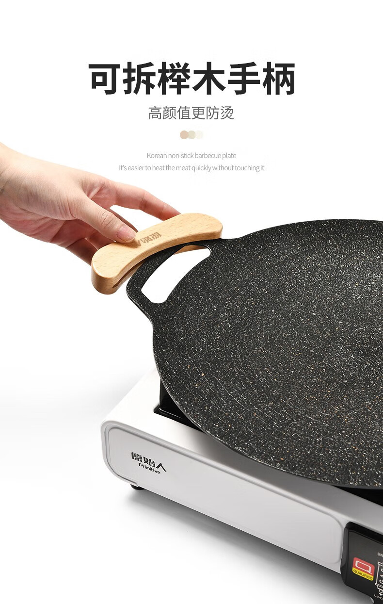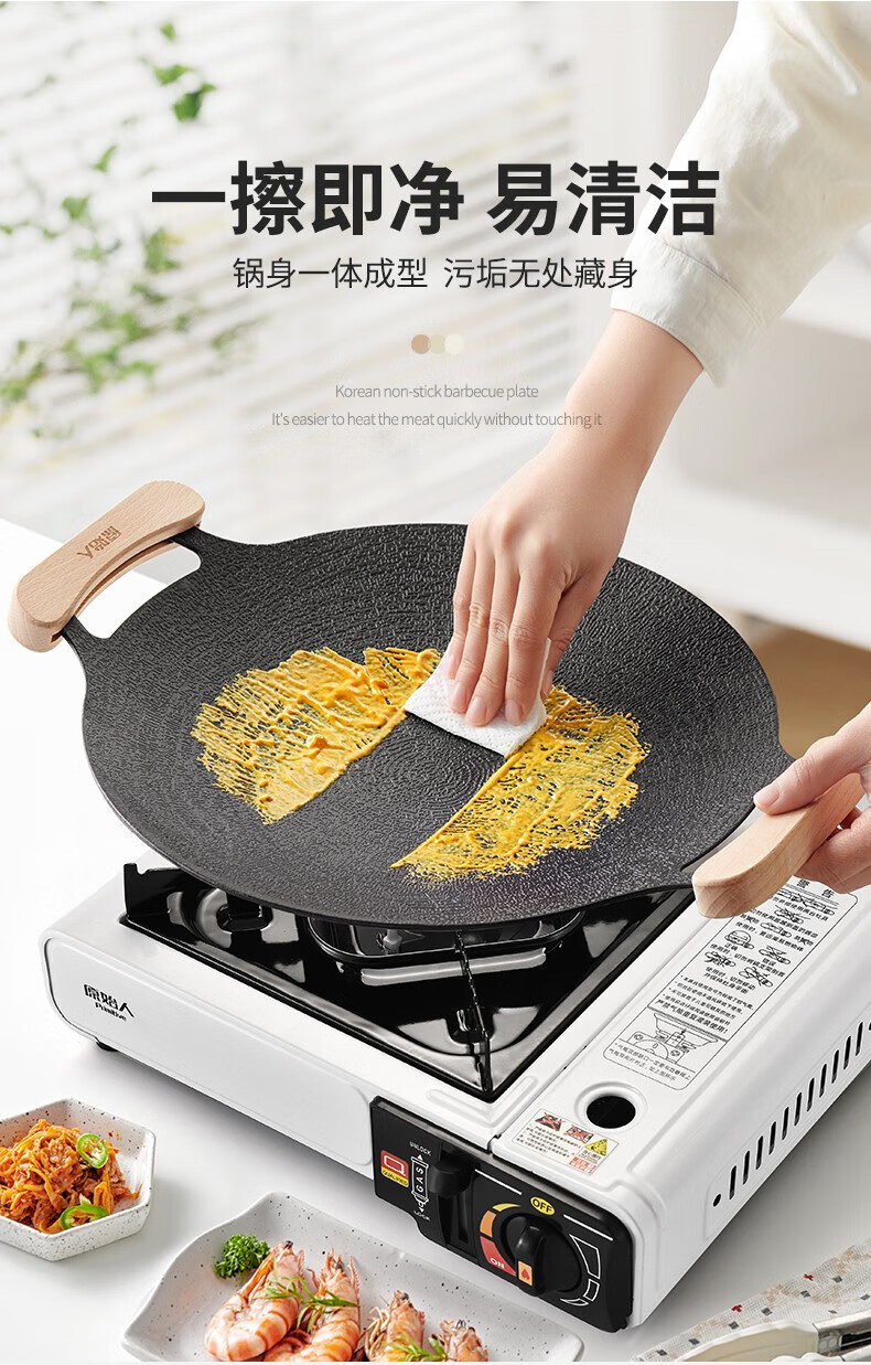 原始人露营烤盘便携户外电磁卡式炉烤盘煎锅麦饭石韩式家用烤肉盘 【精铁明火款】36CM—配收纳袋