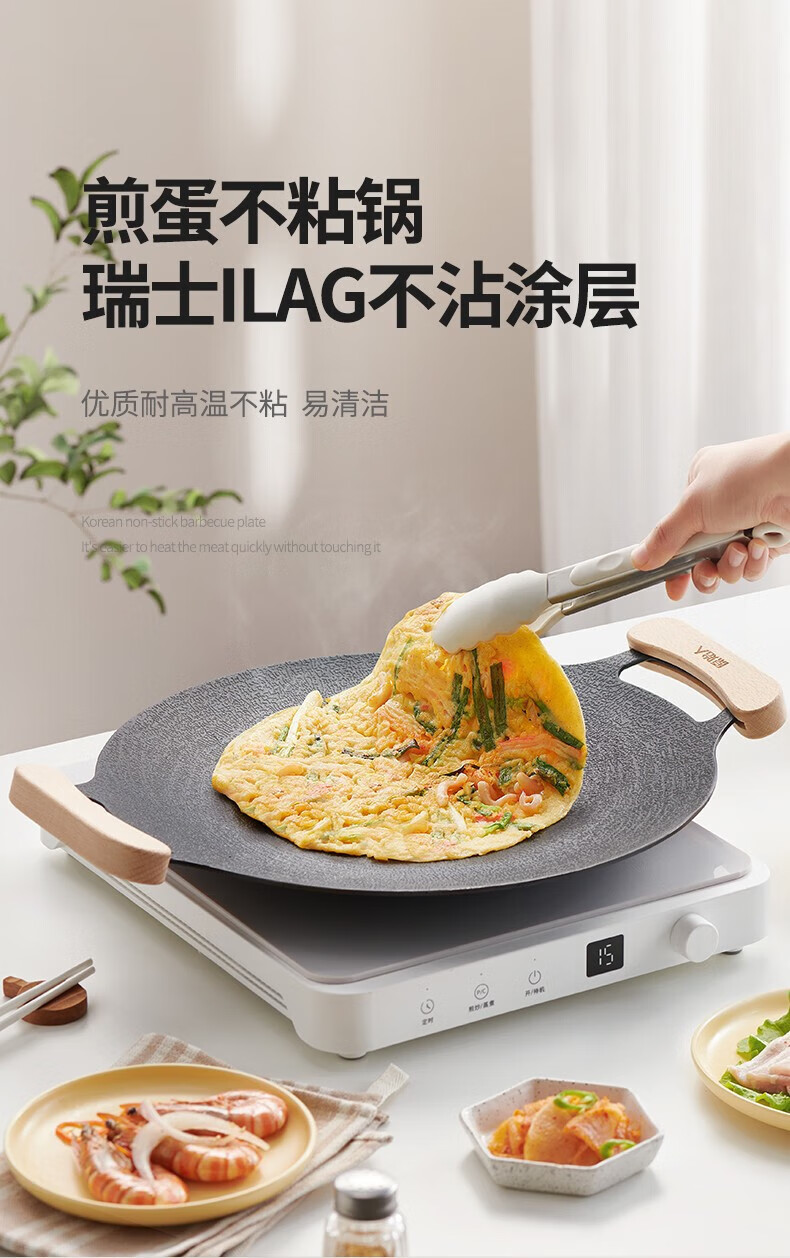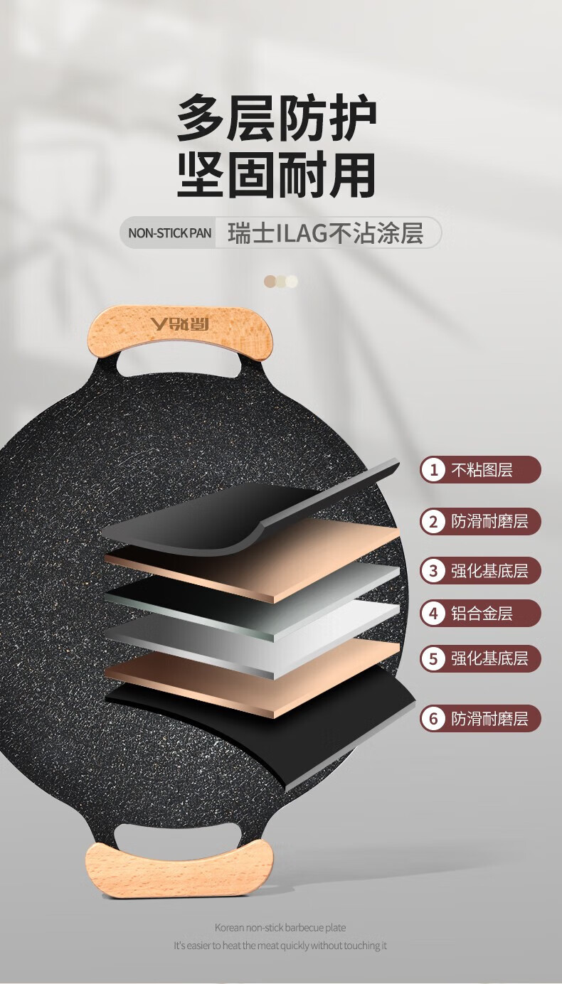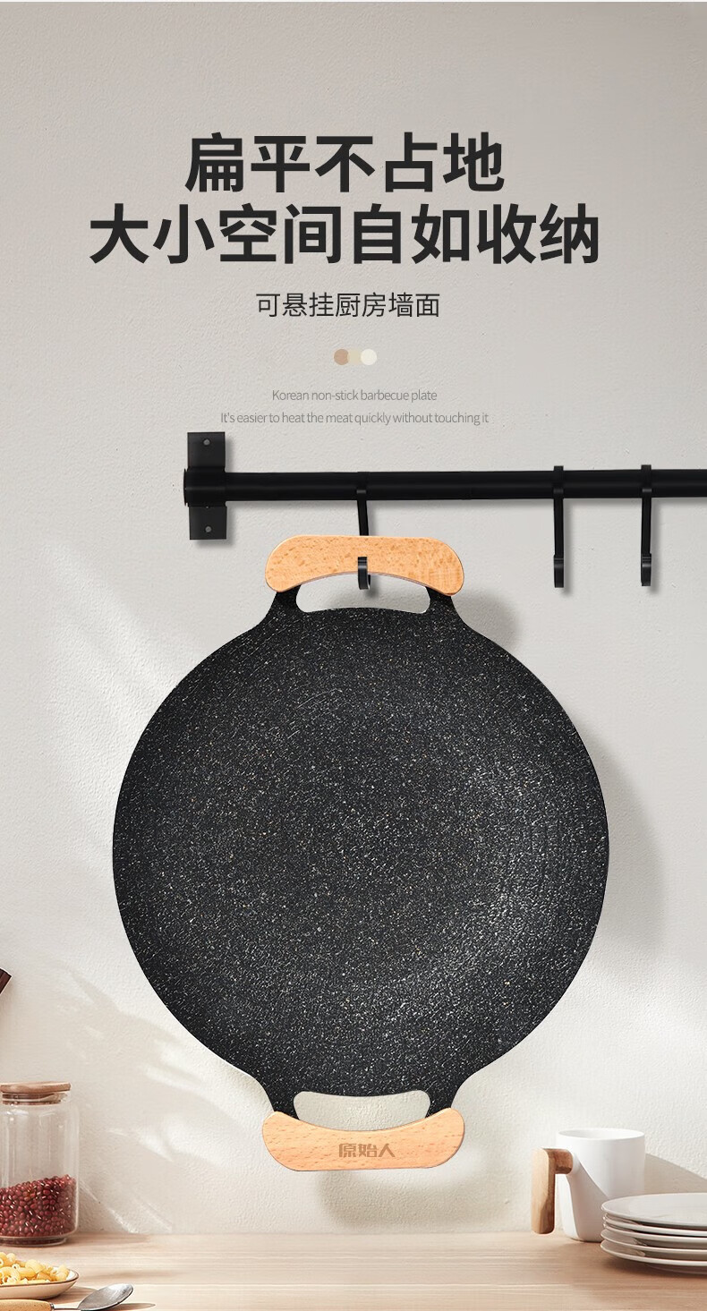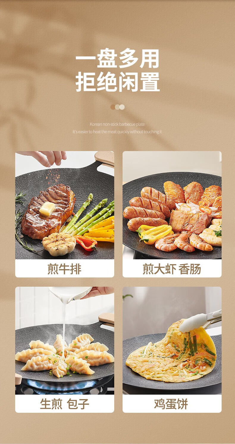 原始人露营烤盘便携户外电磁卡式炉烤盘煎锅麦饭石韩式家用烤肉盘 【精铁明火款】36CM—配收纳袋