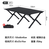 北岳户外折叠桌子便携式蛋卷桌可折叠野餐桌摆摊烧烤桌椅露营用品套装 特大号150cm全黑蛋卷桌-加厚碳钢