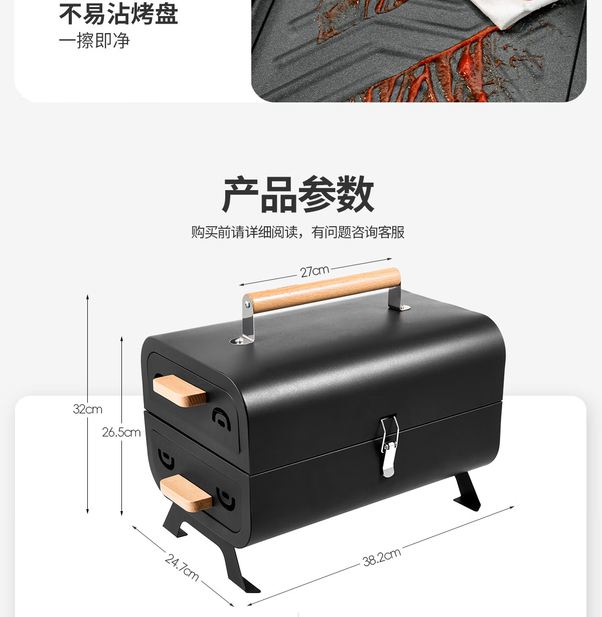这款户外双面碳烤炉质量很棒,厚实耐用。与描述完全相符,细节设计贴心。物流快,下单没几天就到了。服务好,有问必答。性价比超高,值得入手。