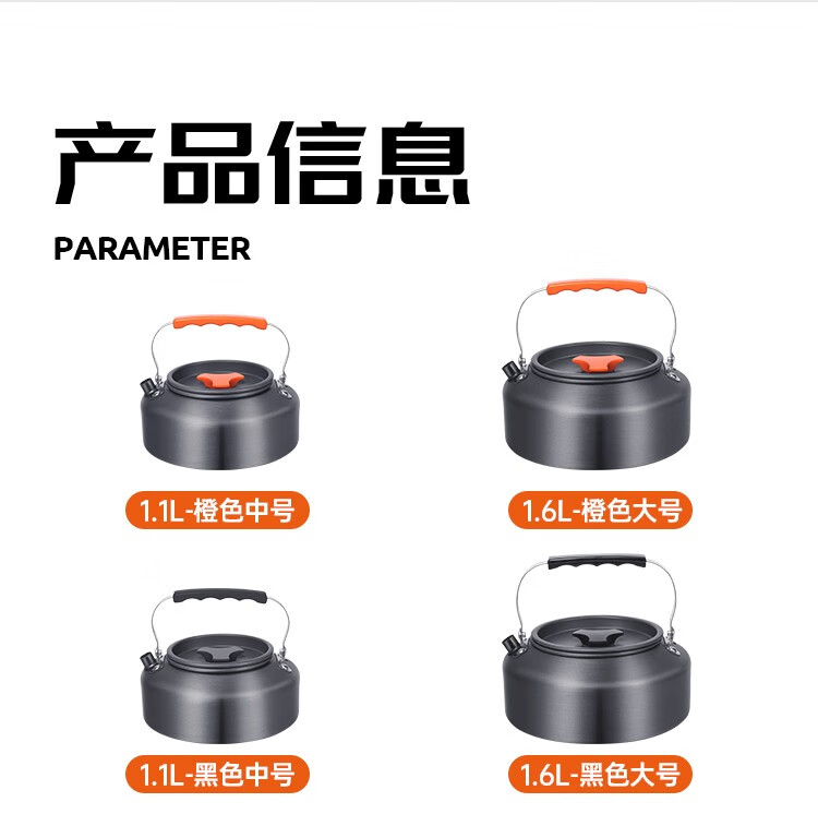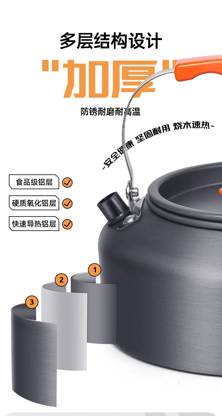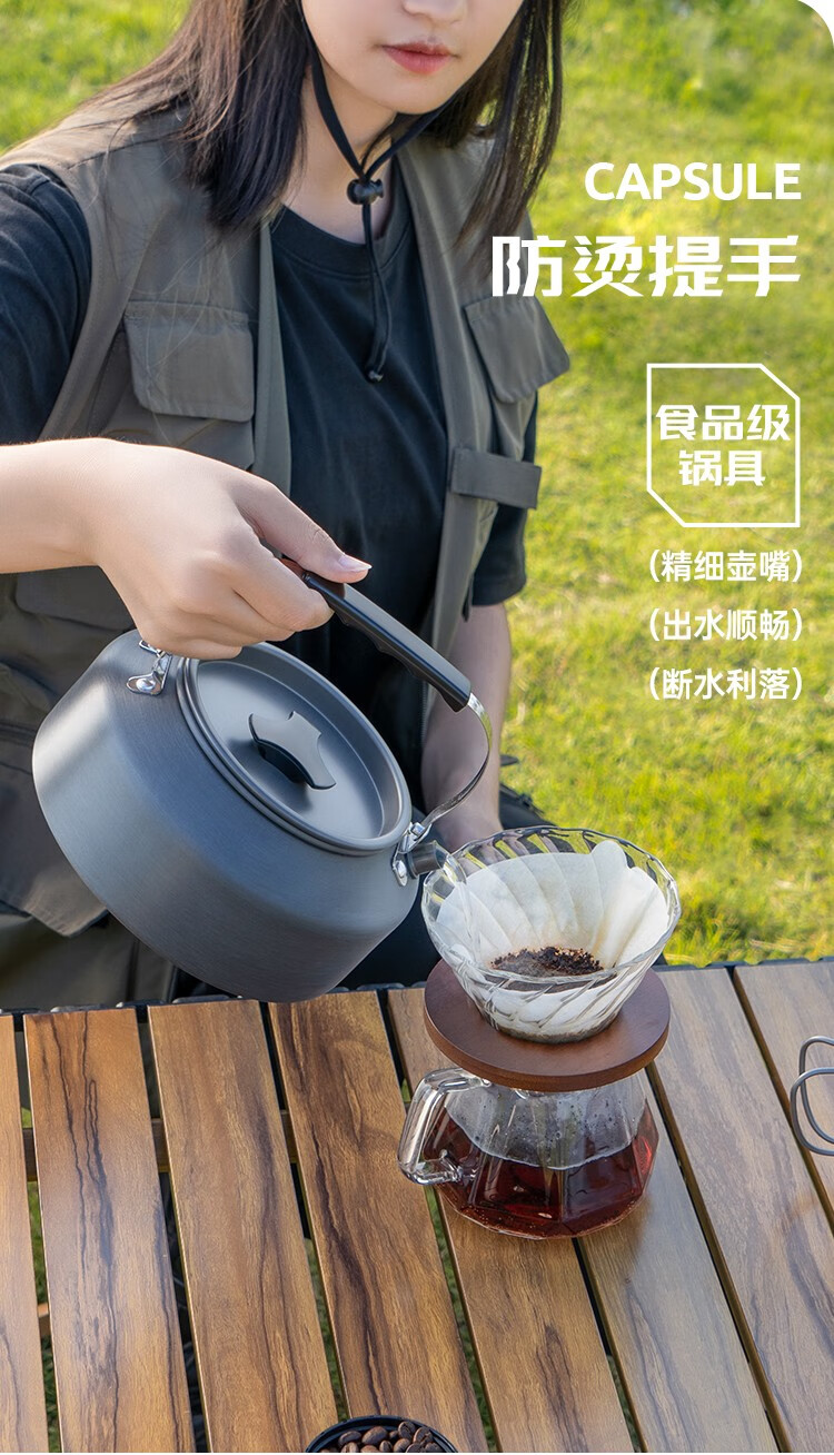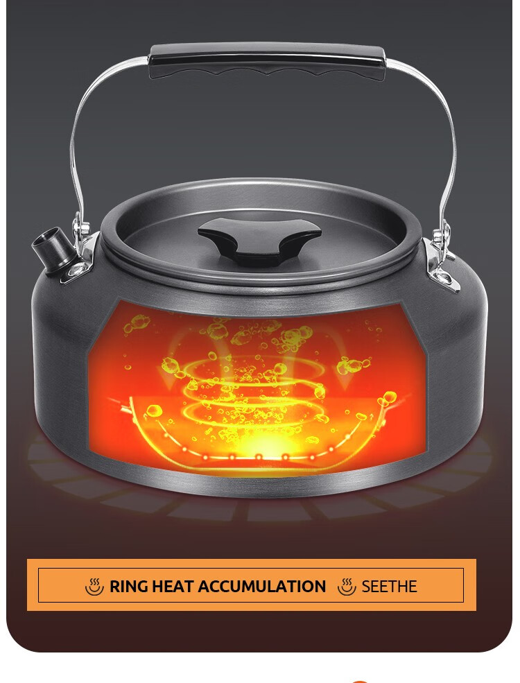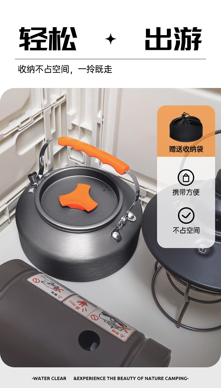 清系露营炊具户外锅水壶煎锅装备便携野外野营餐具锅具用品烧水壶 1.1L黑色