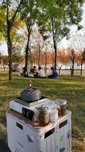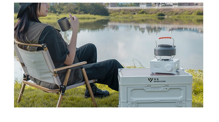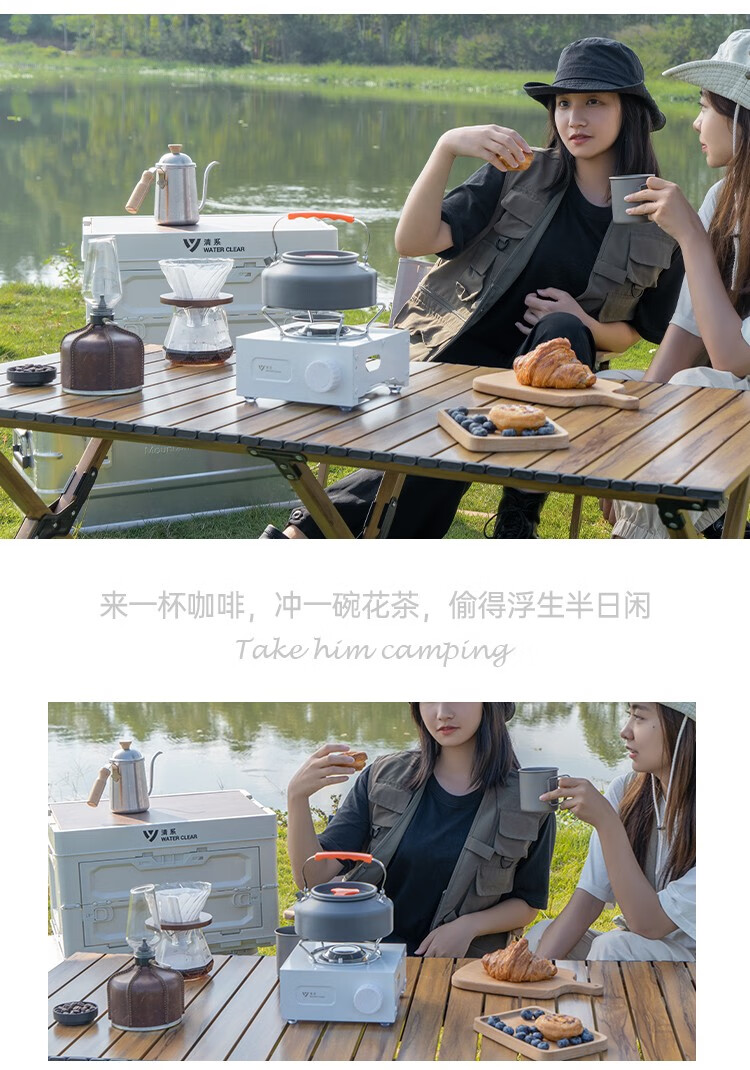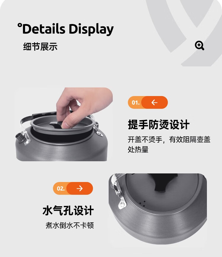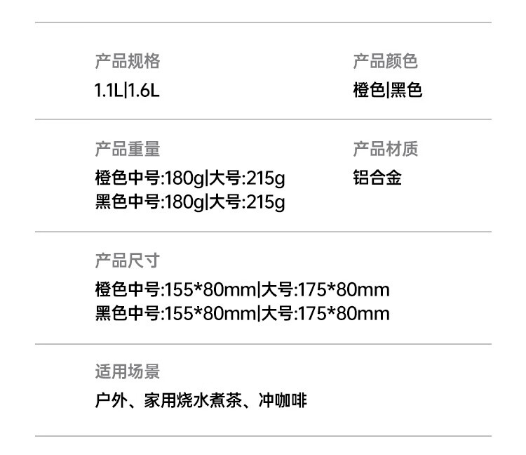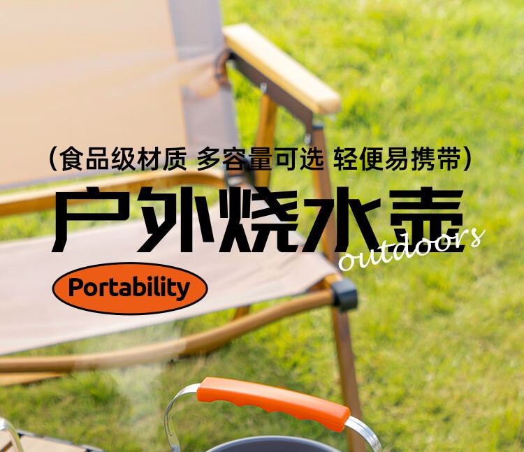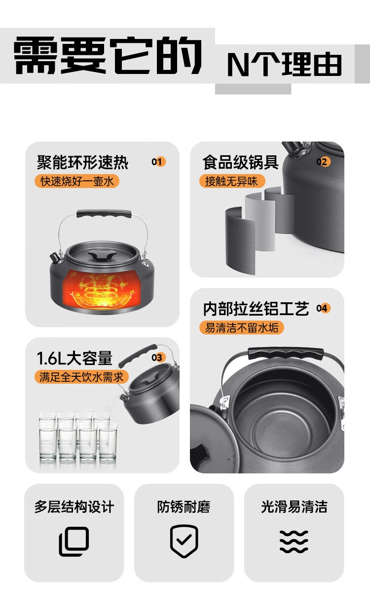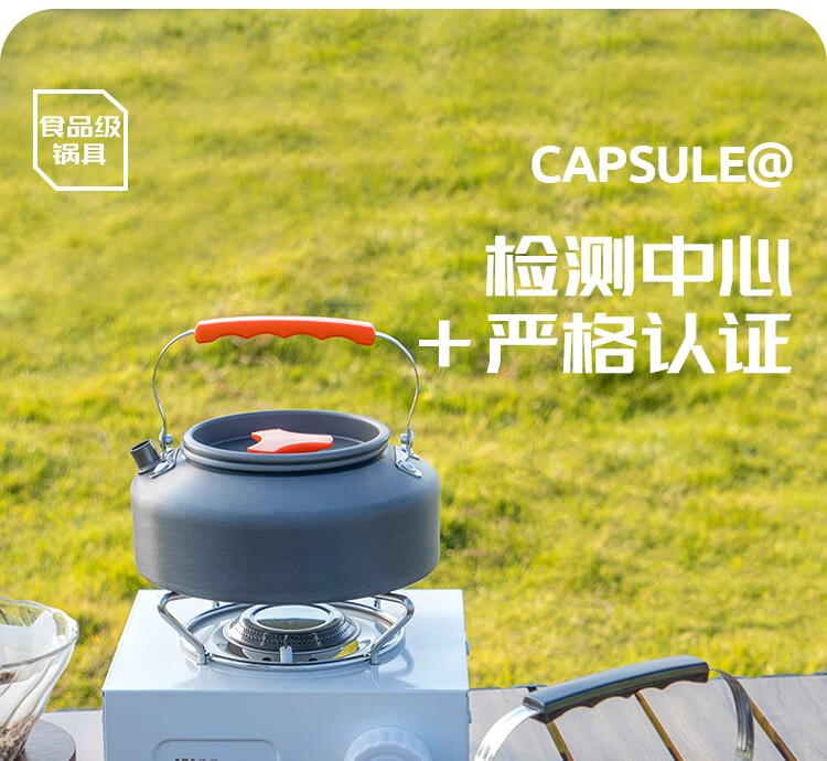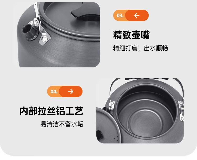 清系露营炊具户外锅水壶煎锅装备便携野外野营餐具锅具用品烧水壶 1.1L黑色