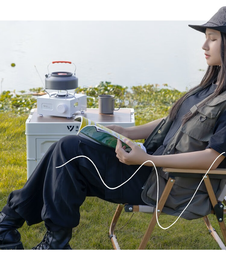 清系便携式露营桌子野餐可折叠克米特椅野营用品装备户外折叠桌蛋卷桌 大号卡其色【树脂扶手】
