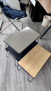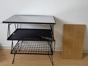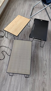 是我喜欢的样子,三张桌子搭配的棒棒哒!配合科曼小炉子,在家也把露营氛围感拉的满满哒,一个包,装三个桌子一个板刚好,我很喜欢。对啦,桌子有点重,但也是因为重所以比较稳。