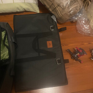 一个包,三个桌刚刚好能装下,很实用方便的桌子,两个的高度刚好当桌子,另一个当置物架刚好,没来得及出去露营就把它拿到阳台用了用,在家假装在露营😅和大家说的一样,桌子比较重,打开方式比较特别,女生请直接用脚踩!