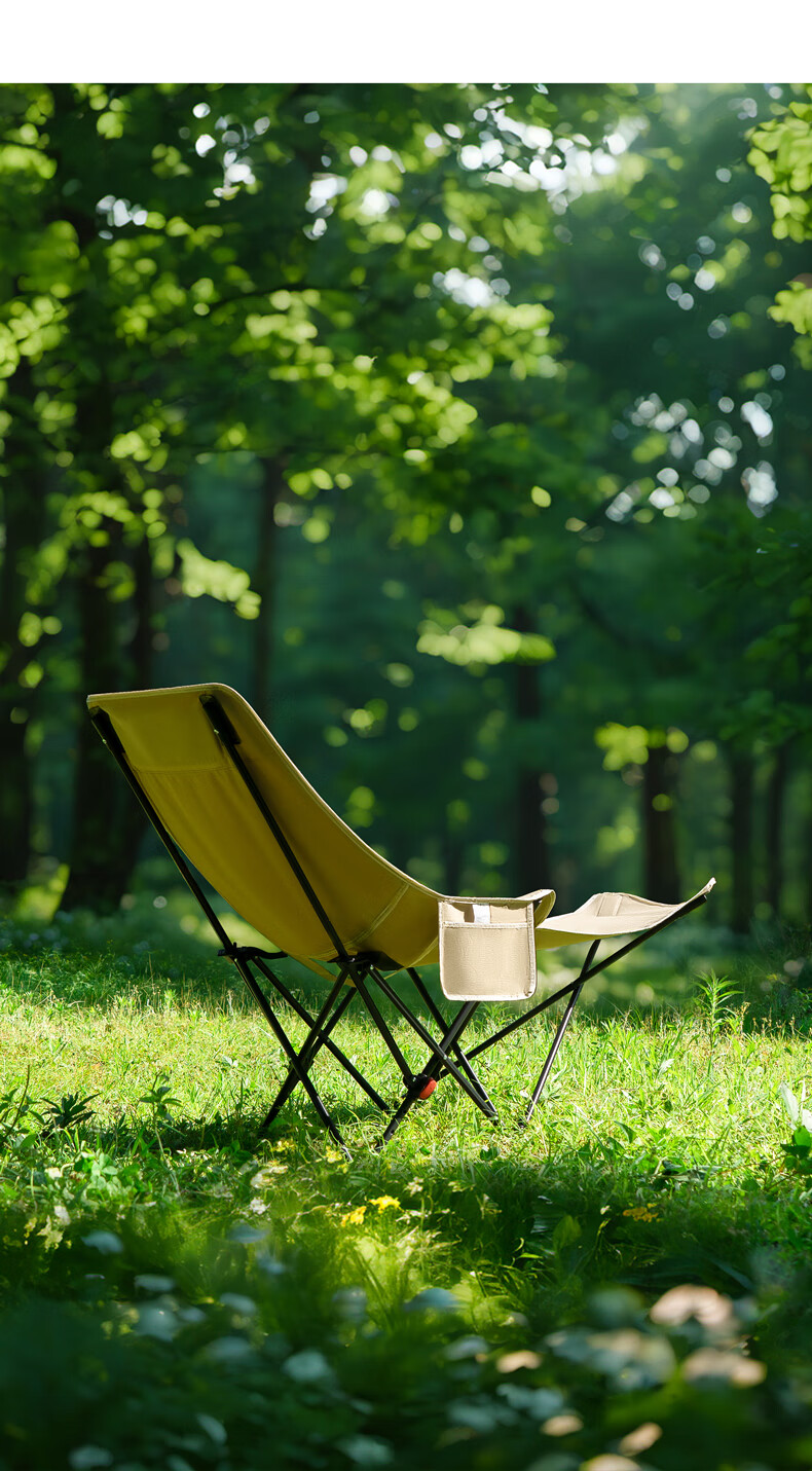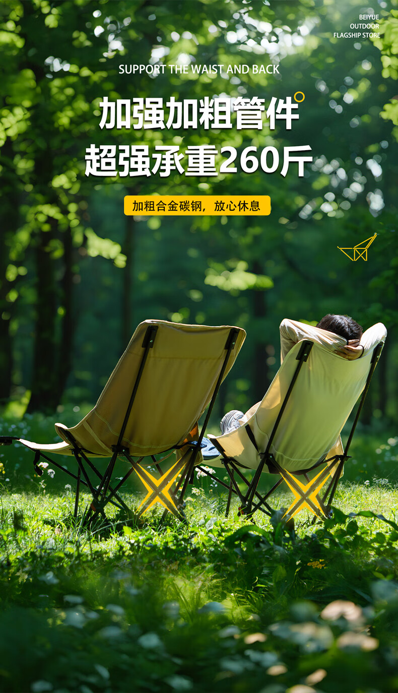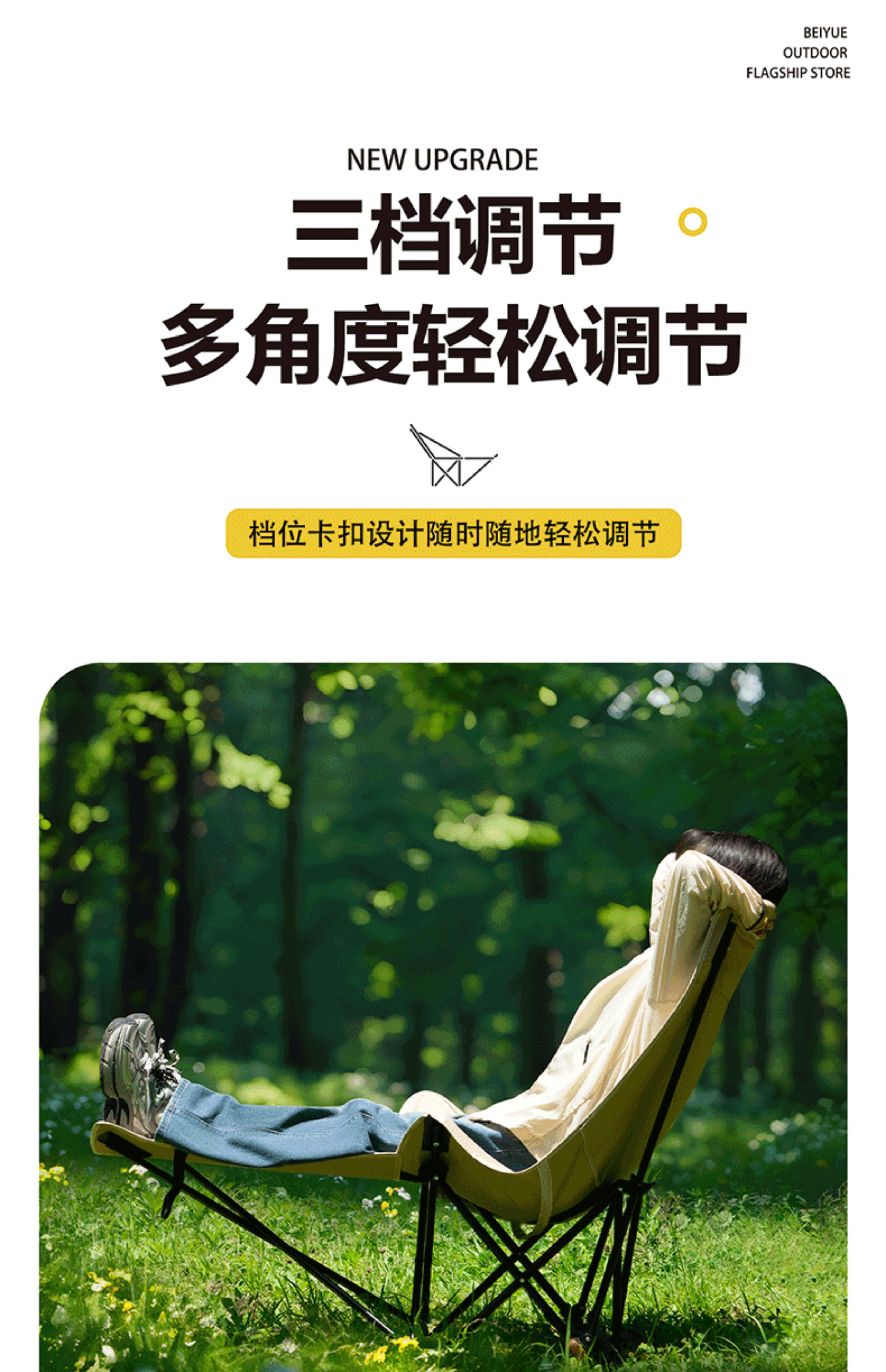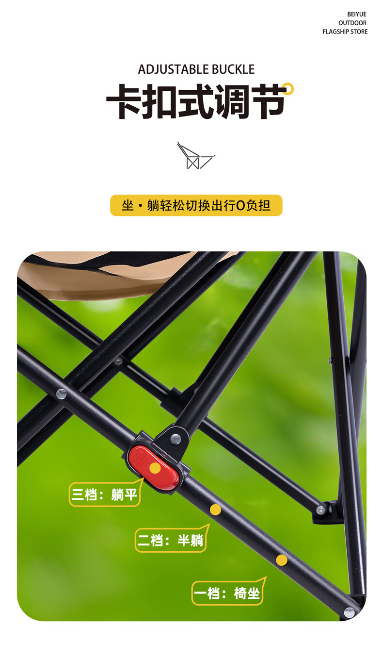 北岳户外折叠椅加高月亮椅露营椅子便携板凳钓鱼沙滩躺椅野餐桌椅装备 三档可调节/高背舒适月亮椅【中号-流沙金】