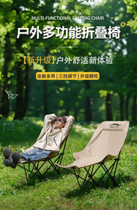 北岳户外折叠椅午休加高月亮露营椅便携钓鱼凳沙滩午睡躺椅野餐陪护椅 曜石黑高背月亮椅+可拆腿托【四挡档调节】