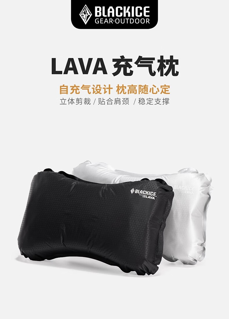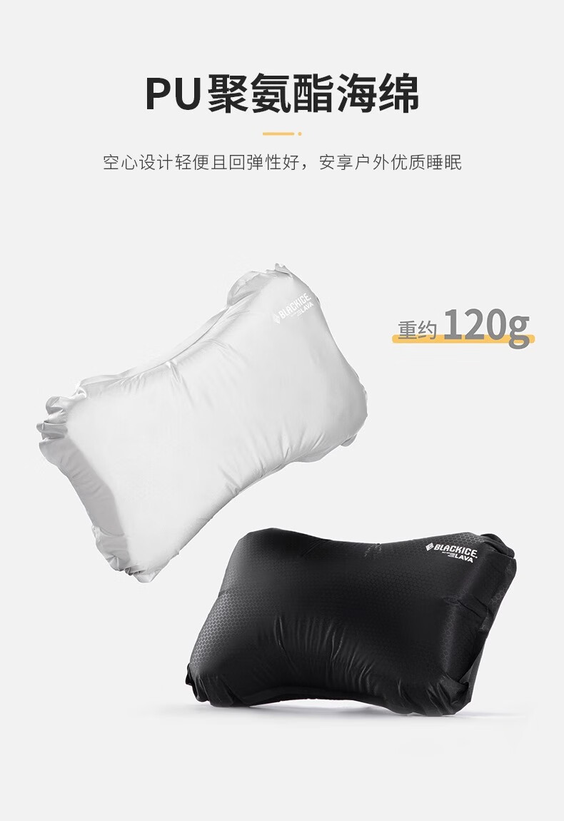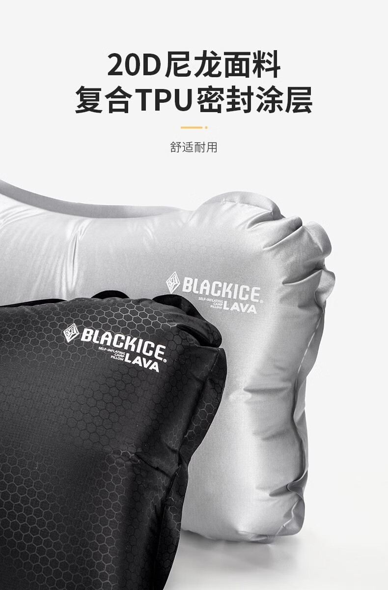 黑冰自充气枕头旅行枕便携户外露营吹气枕气垫空气枕午睡Z6105 黑色