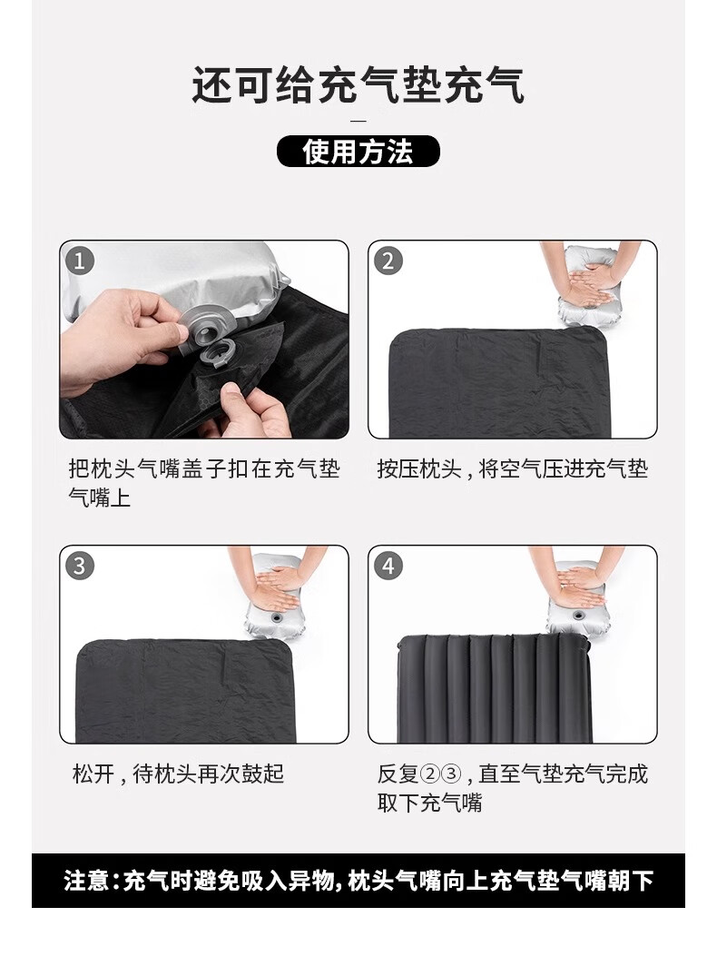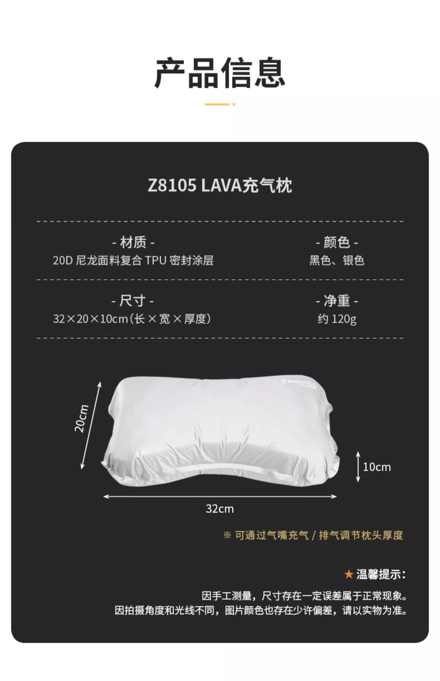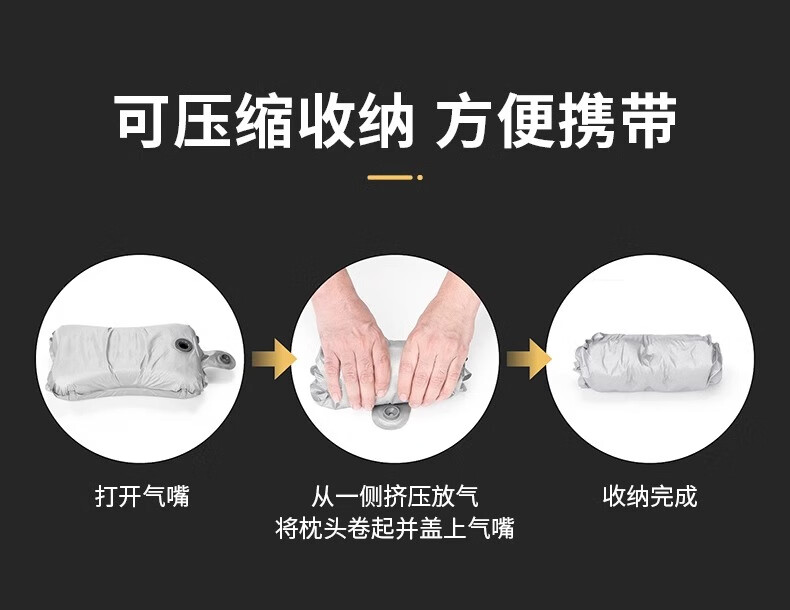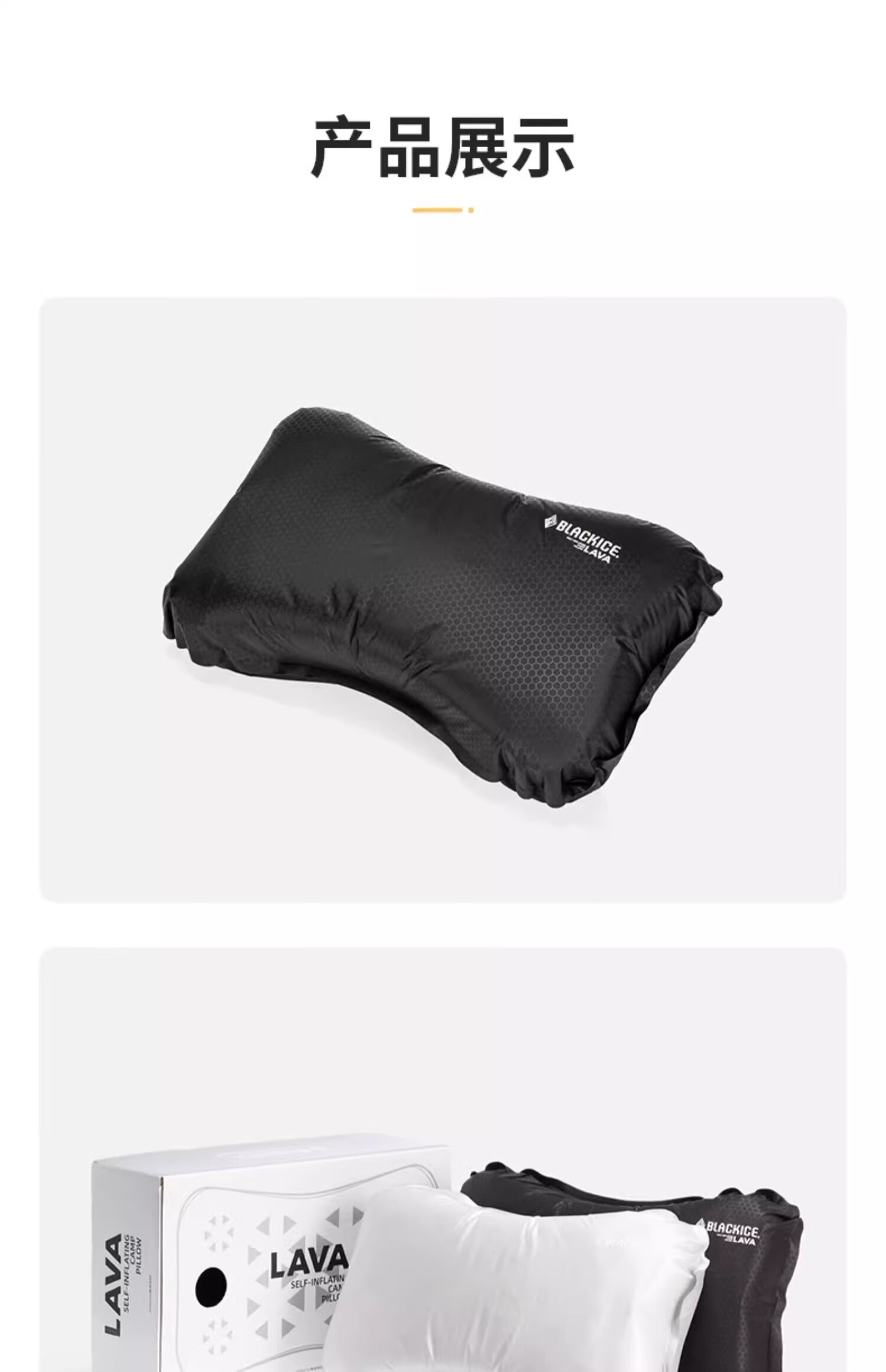 黑冰自充气枕头旅行枕便携户外露营吹气枕气垫空气枕午睡Z6105 黑色
