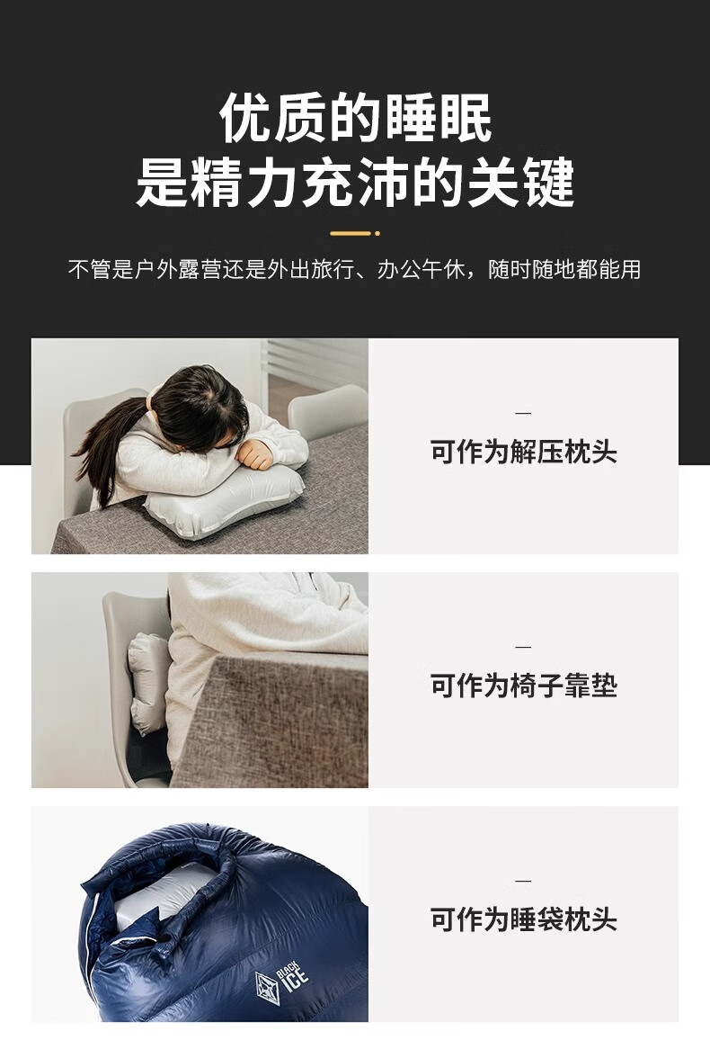 山约羽绒充气枕头户外露营睡袋旅行枕高铁飞机睡觉便携腰垫护颈枕腰靠