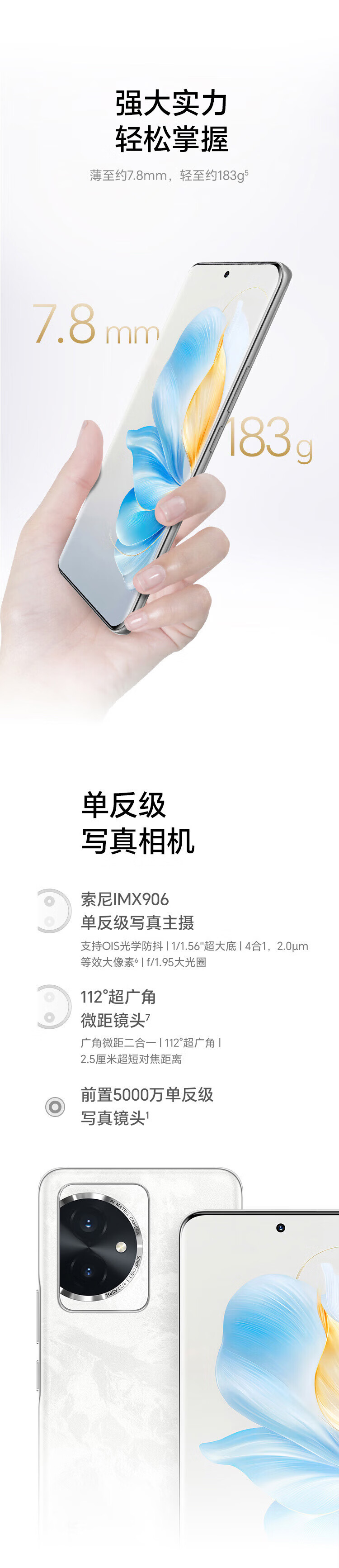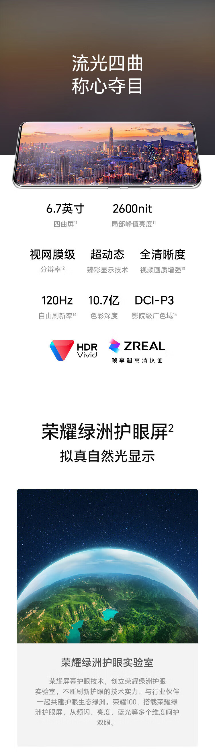 荣耀100 荣耀绿洲护眼屏 立体声双扬声器 OIS光学防抖5G【全新正品 全国联保 防伪验证】 月影白 12GB+256GB 官方标配