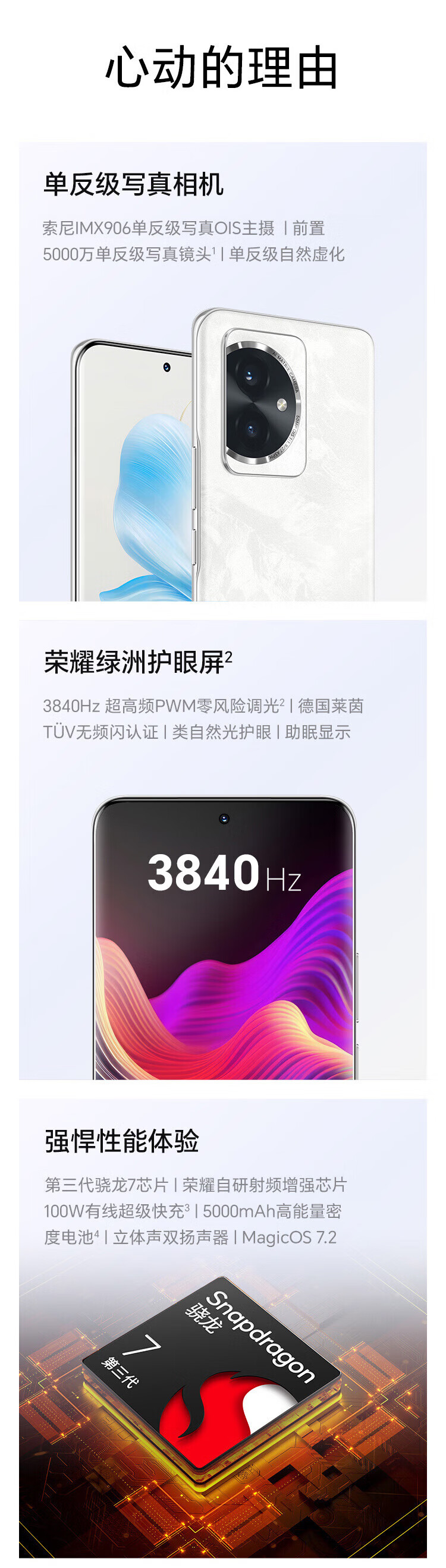 荣耀100 分期免息白条可选荣耀绿洲护眼屏第三代骁龙7移动平台立体声5G手机 月影白 12GB+256GB