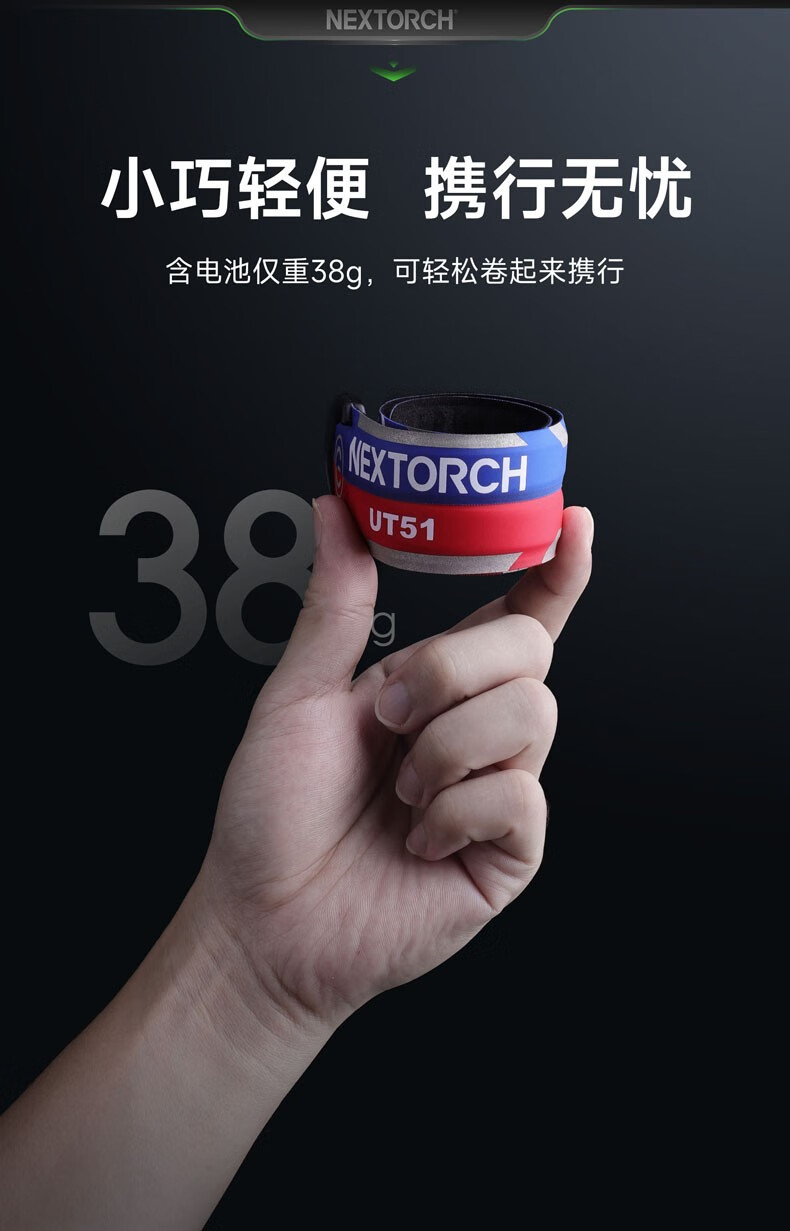 骑行,夜跑安全多了,比肩灯挂灯可视度要好,续航时间长,t口充电也方便,不用的时候一卷放口袋收纳方便