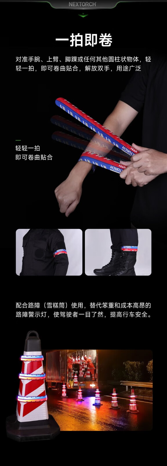 非常小巧实用的警示手环,不管是公安交警这些执法部门执法也好,还是运动爱好者用于夜跑、夜骑等等,都是非常不错的,有很好的警示和辨识度,晚上的安全性大大提高。有点小遗憾就是还不够长,如果是体重较大或者大围度的人使用,绑在大臂上可能会有点小。其他各方面来说都是比较不错的!