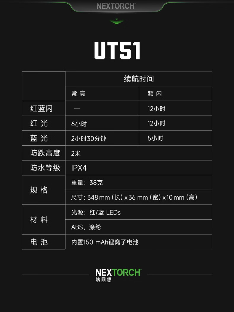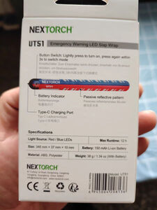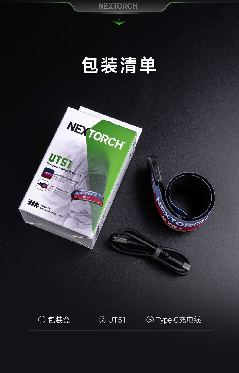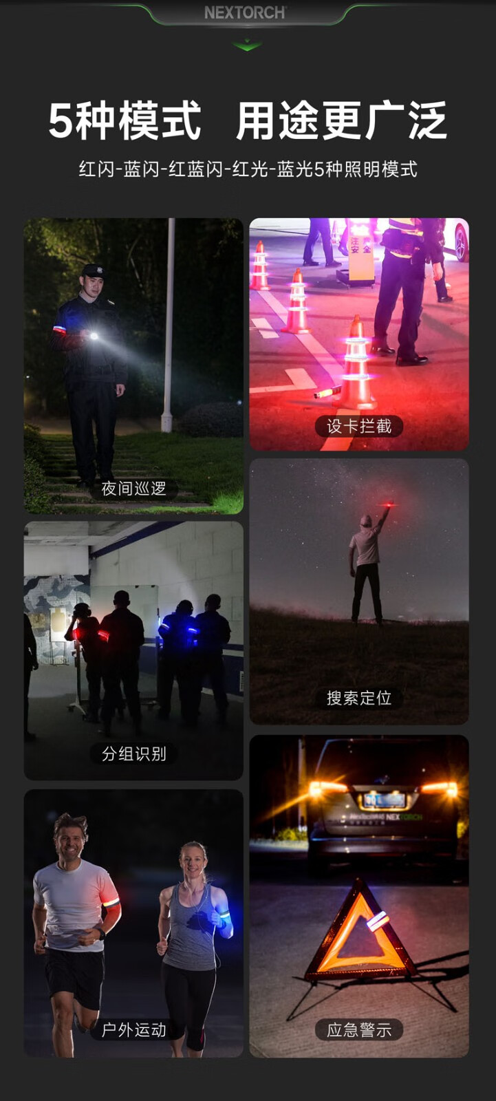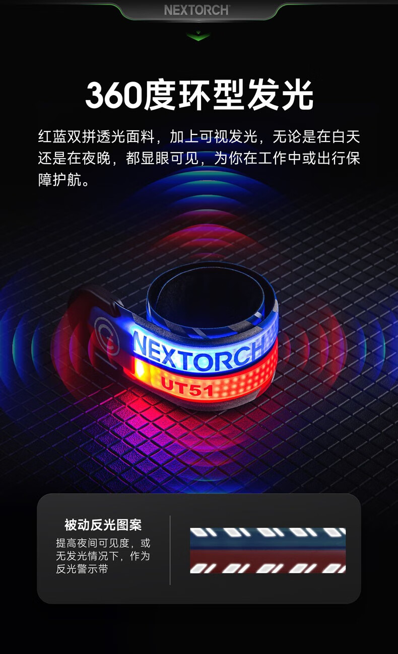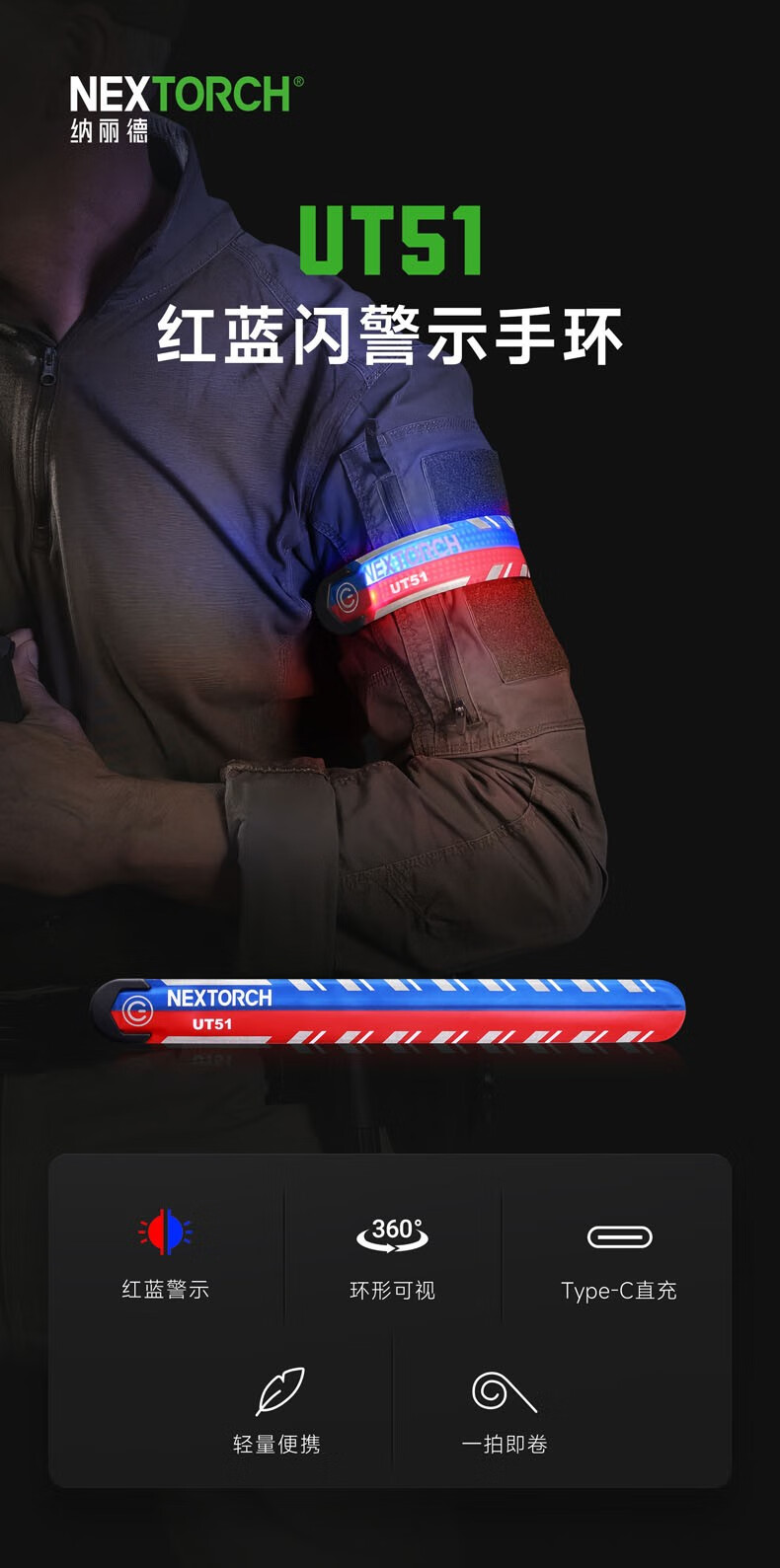 纳丽德(NEXTORCH)UT51红蓝闪警示手环骑行夜跑安全识别灯巡逻发光手环Type-C直充 UT51C手环(7种模式/长45.8CM)