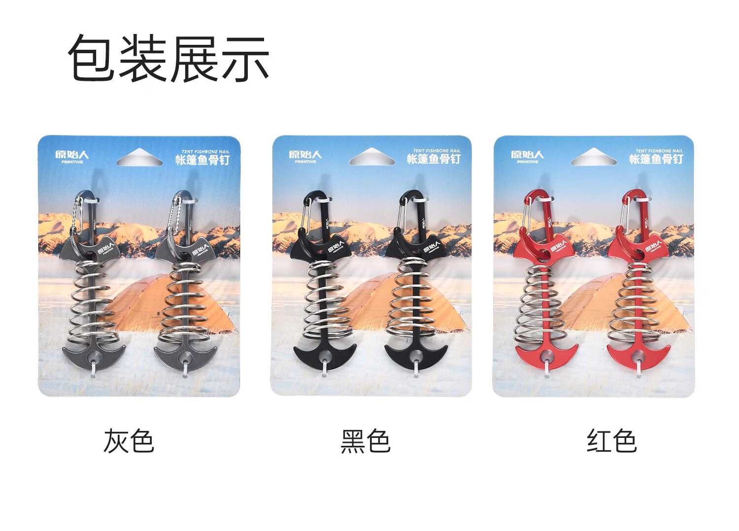 迪紫兔户外露营帐篷鱼骨地钉天幕甲板钉栈板固定多功能弹簧扣地钉风绳扣 【红色】大号鱼骨钉【4个装】