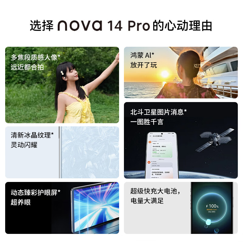华为nova 14 Pro 【24期免息可选】新品手机华为 多焦段红枫质感人像 北斗卫星图片消息 新机2025上市 冰晶粉 12GB+256GB全网通 官方标配