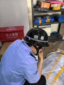 真是有两有有4个帽子的。然后因为开会说要增加安保设备,所以呢就多买了两个帽子来备用。嗯,这个帽子质量挺好的,很硬的感觉吧。那平时反正也没怎么戴,备用的