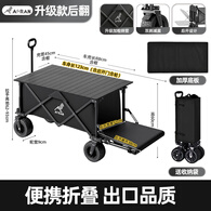 Aoran 露营推车可折叠户外手推野餐车营地拖车拉杆小拉车桌板野营车 黑色【双刹飞机轮+桌板】