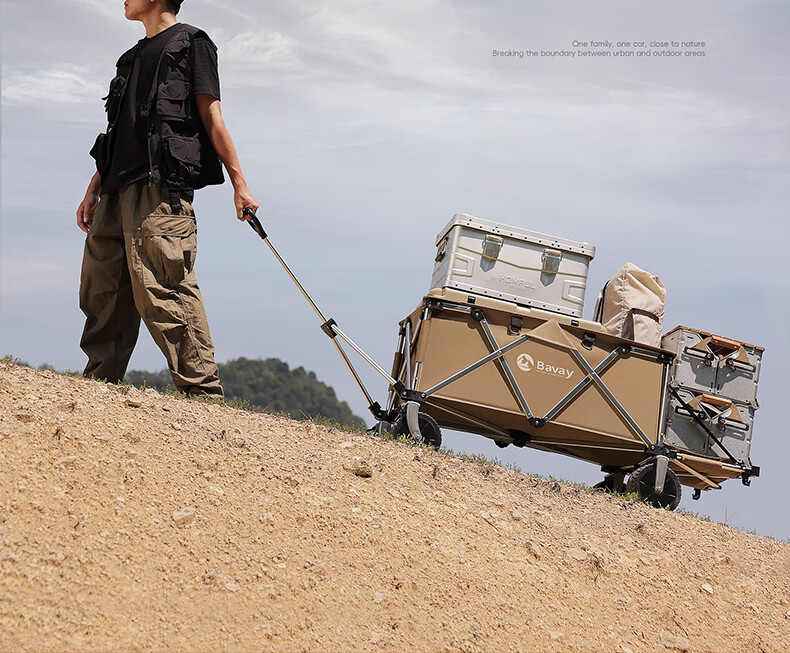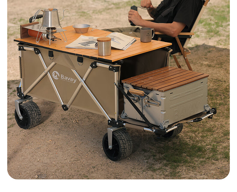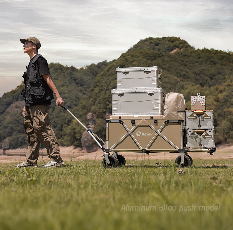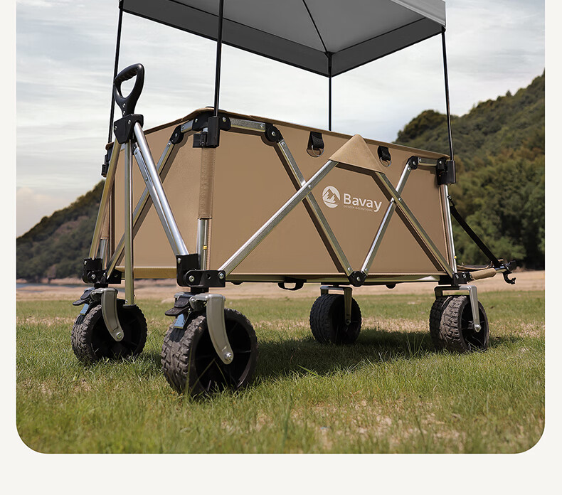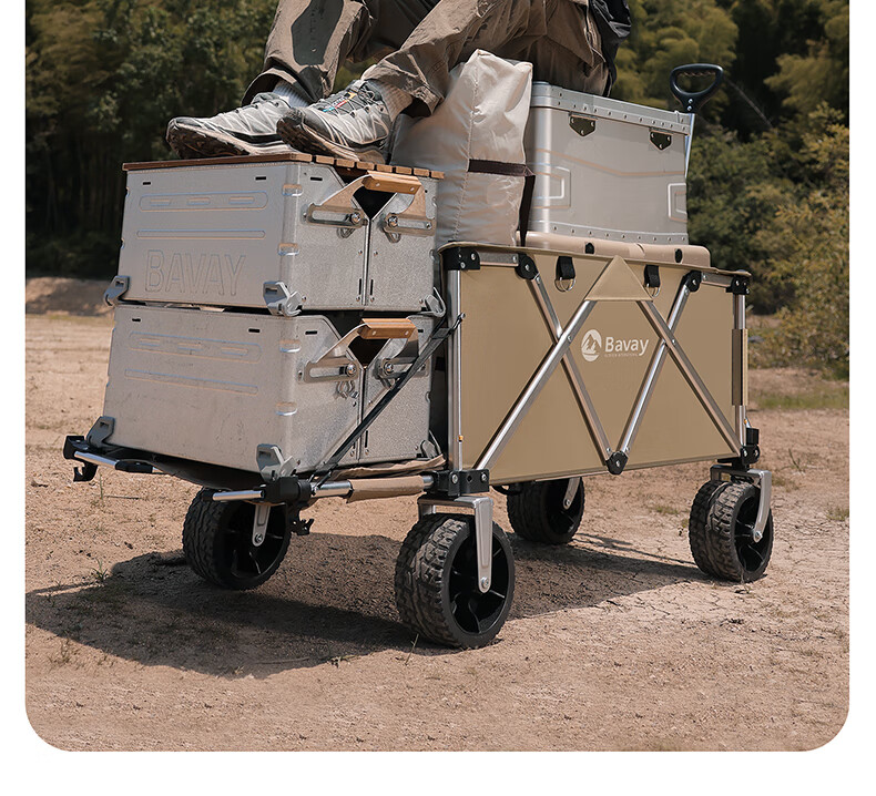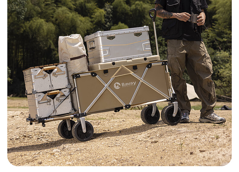 北欢bavay露营推车折叠小推车户外营地野餐拉货车F12 300L 卡其-铝合金车架-四轮快拆