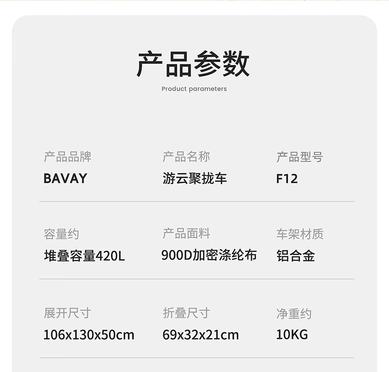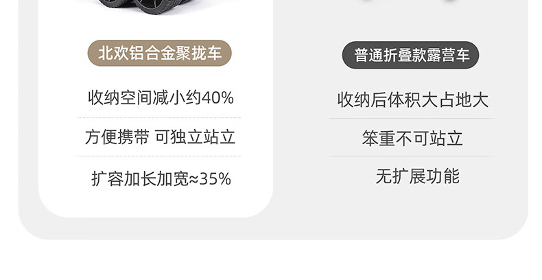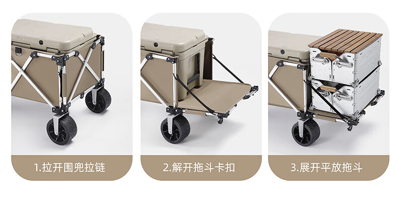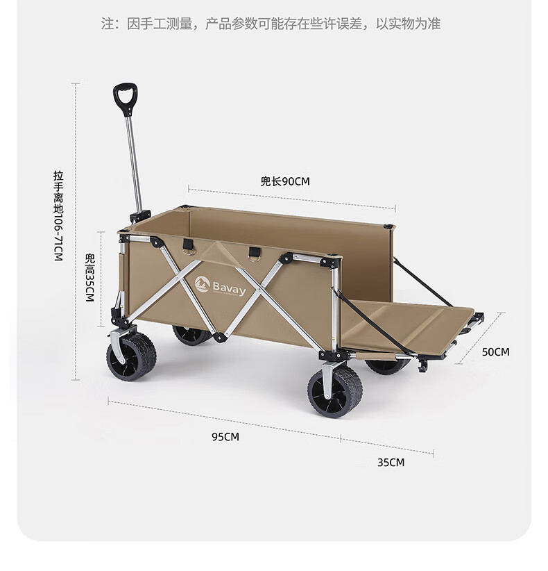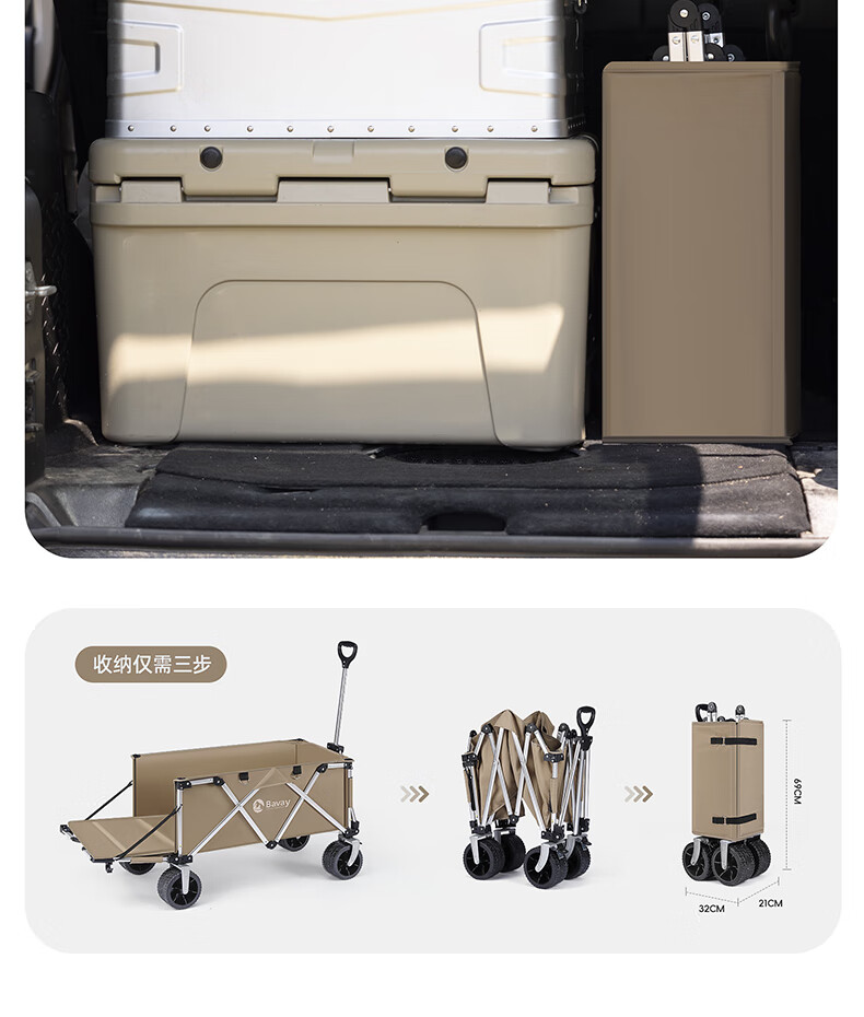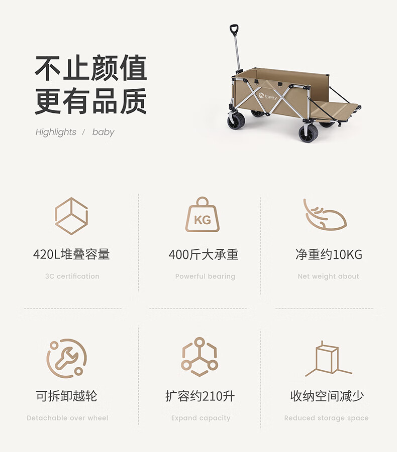 北欢bavay露营推车折叠小推车户外营地野餐拉货车F12 300L 卡其-铝合金车架-四轮快拆