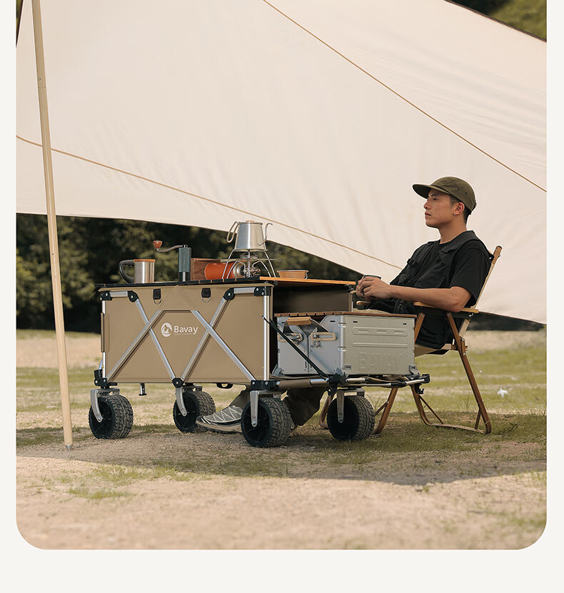 北欢 Bavay聚拢型露营车折叠手推车野营地拉车加大款S01 400L 【套餐1】餐车+2把大号椅