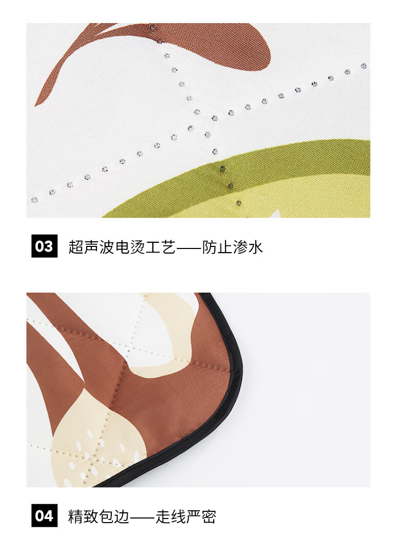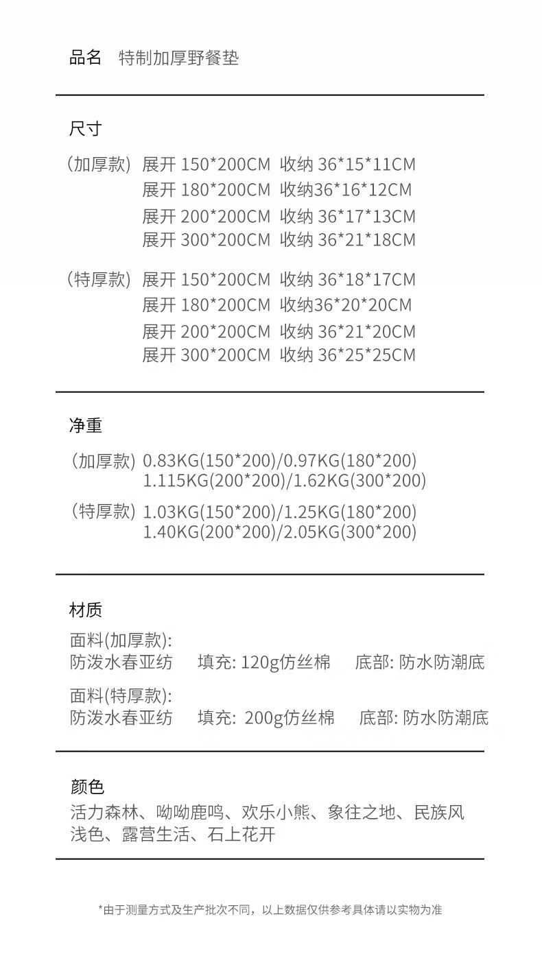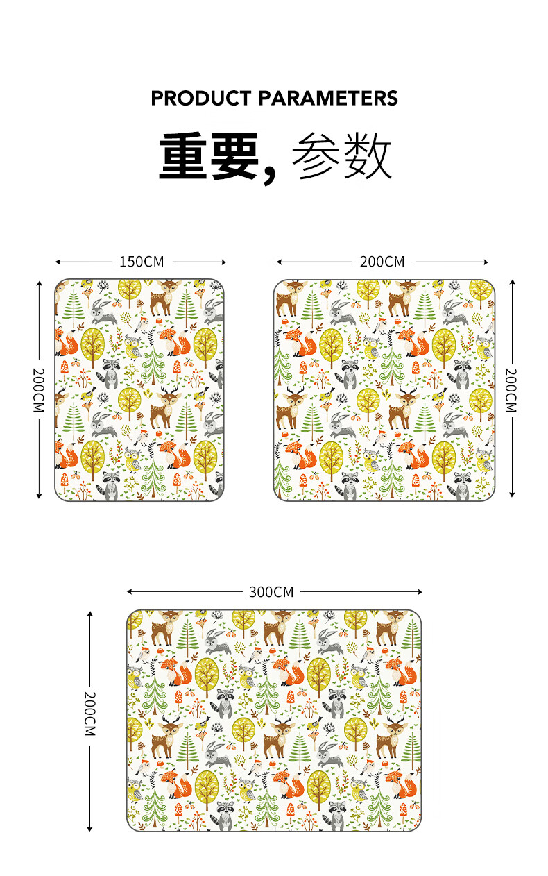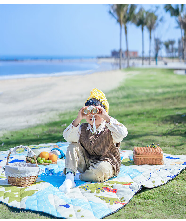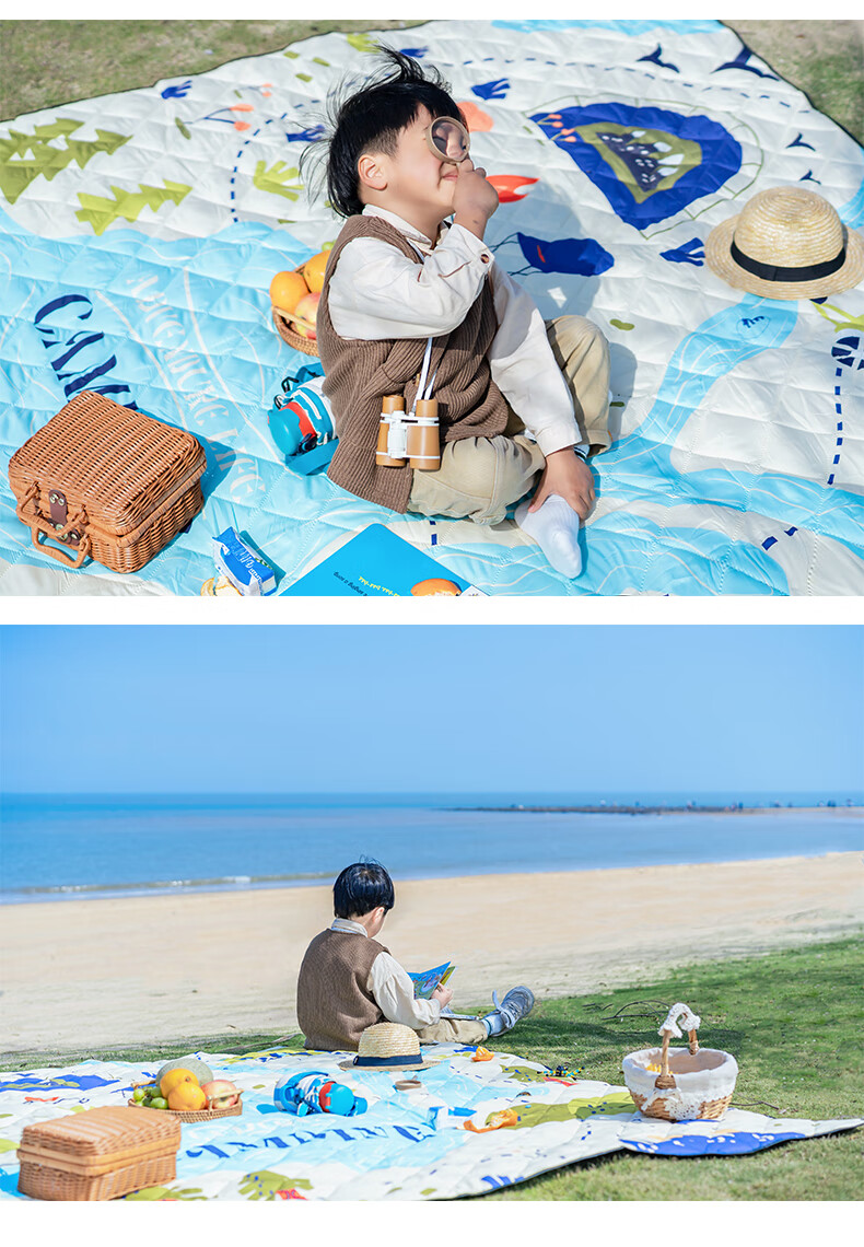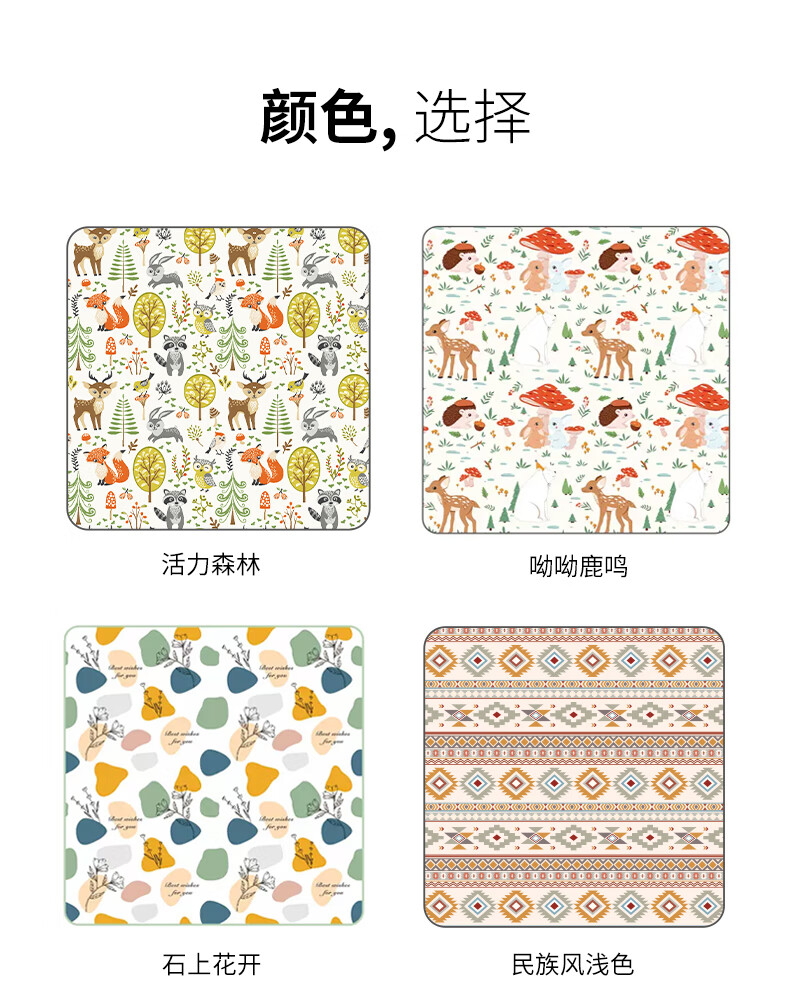 防水效果:防水效果不错,小孩喝牛奶洒在上面了擦擦就没事了 适用场景:买来去外面草地晒太阳用的,在家里也能铺开给小孩垫着玩 很厚实的垫子,图案也好看的哈哈哈 便携性能:折起来很方便携带的,放车上也不怎么占地方,出去玩就带上