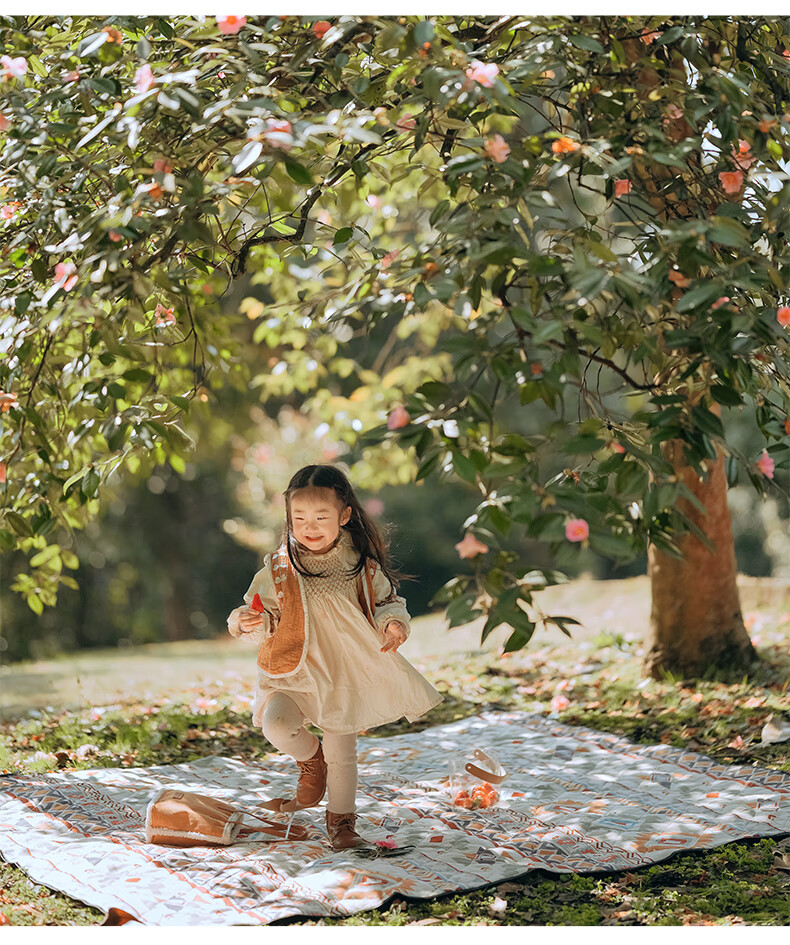 这野餐垫轻薄便于携带,可以扔车上不会占空间,没有什么味道,面料手感很舒服,是棉布料的感觉,2X2的大面积性价比不错的,我四十五到手的,有送的劵的可以参考下哦
