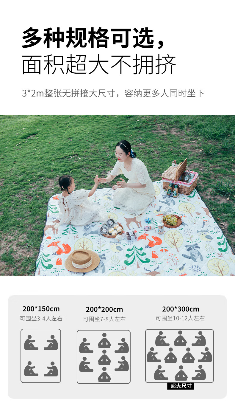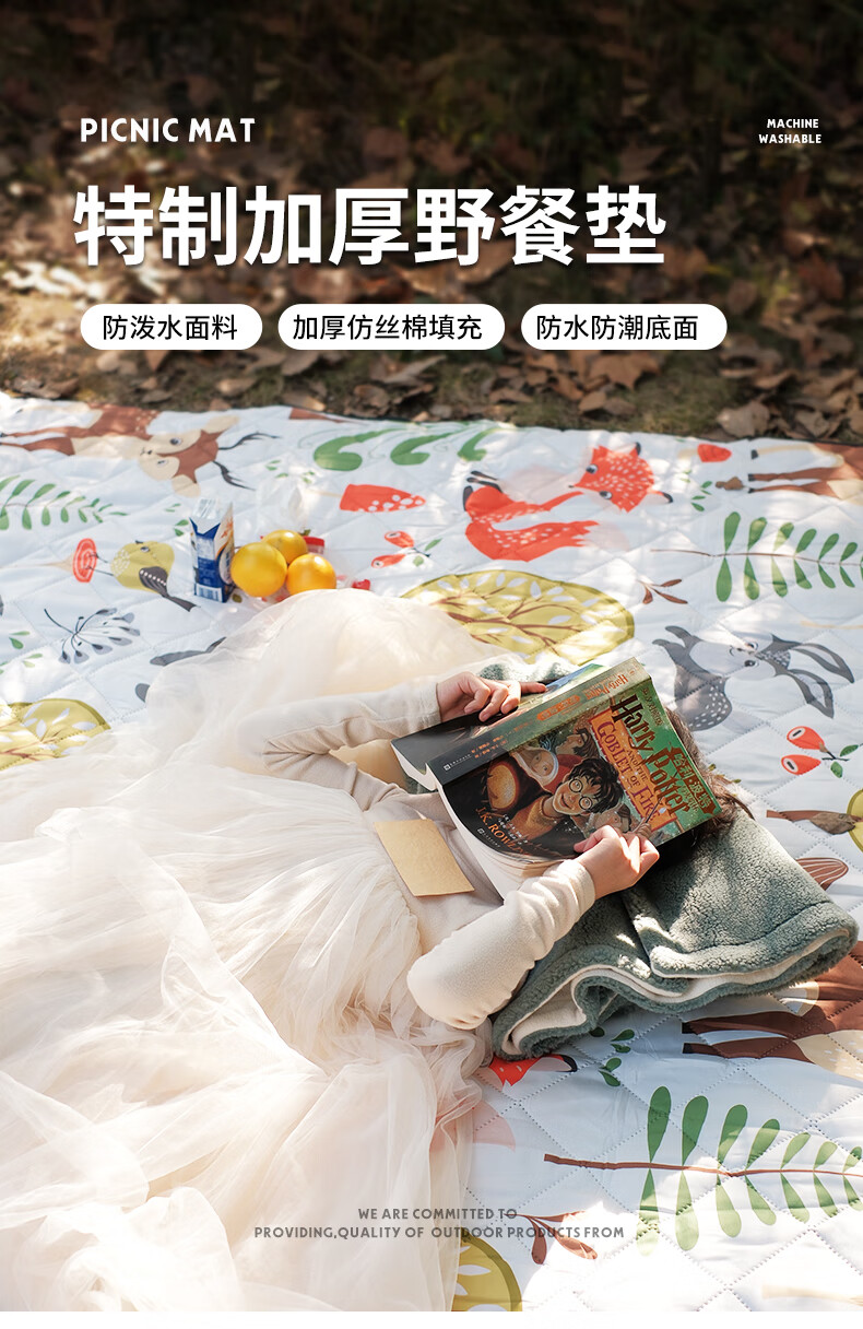 kommot牧彻超声波加厚野餐垫防潮垫户外餐垫露营地垫春游防水便携野餐布 【加厚款】活力森林2*2m