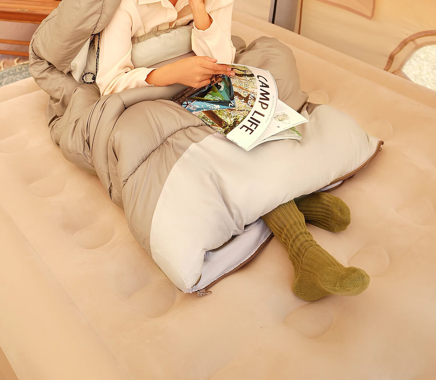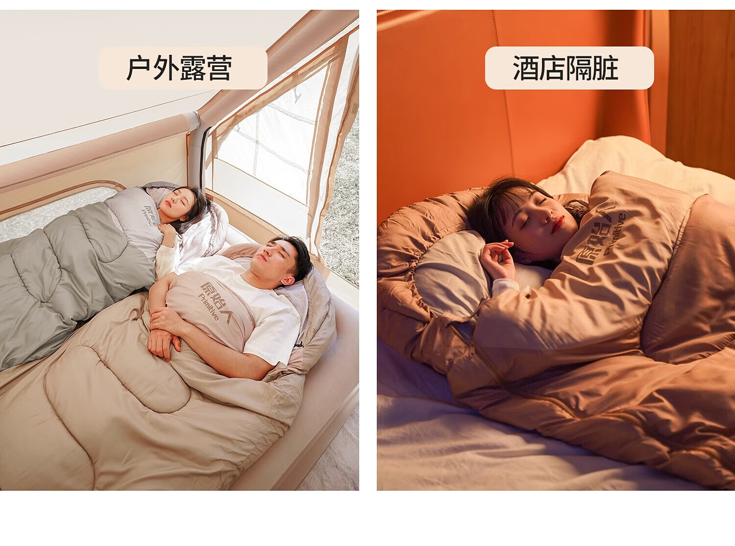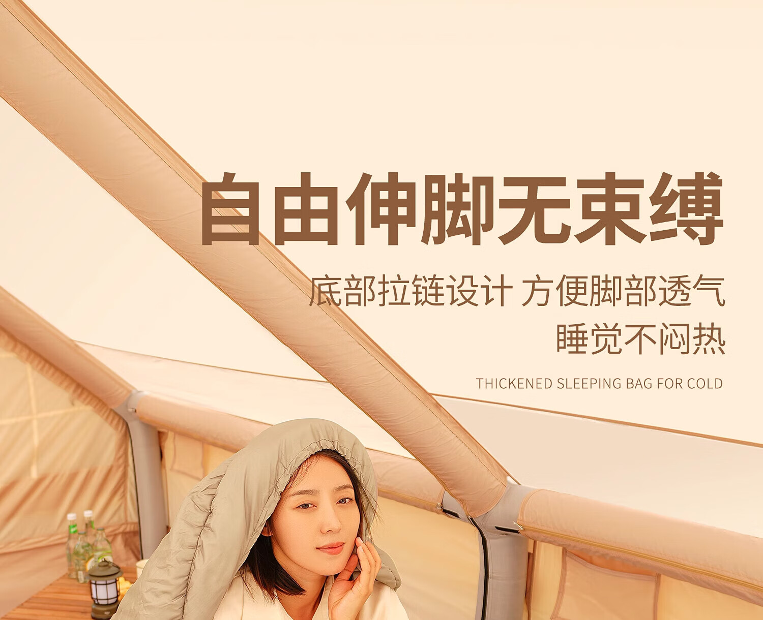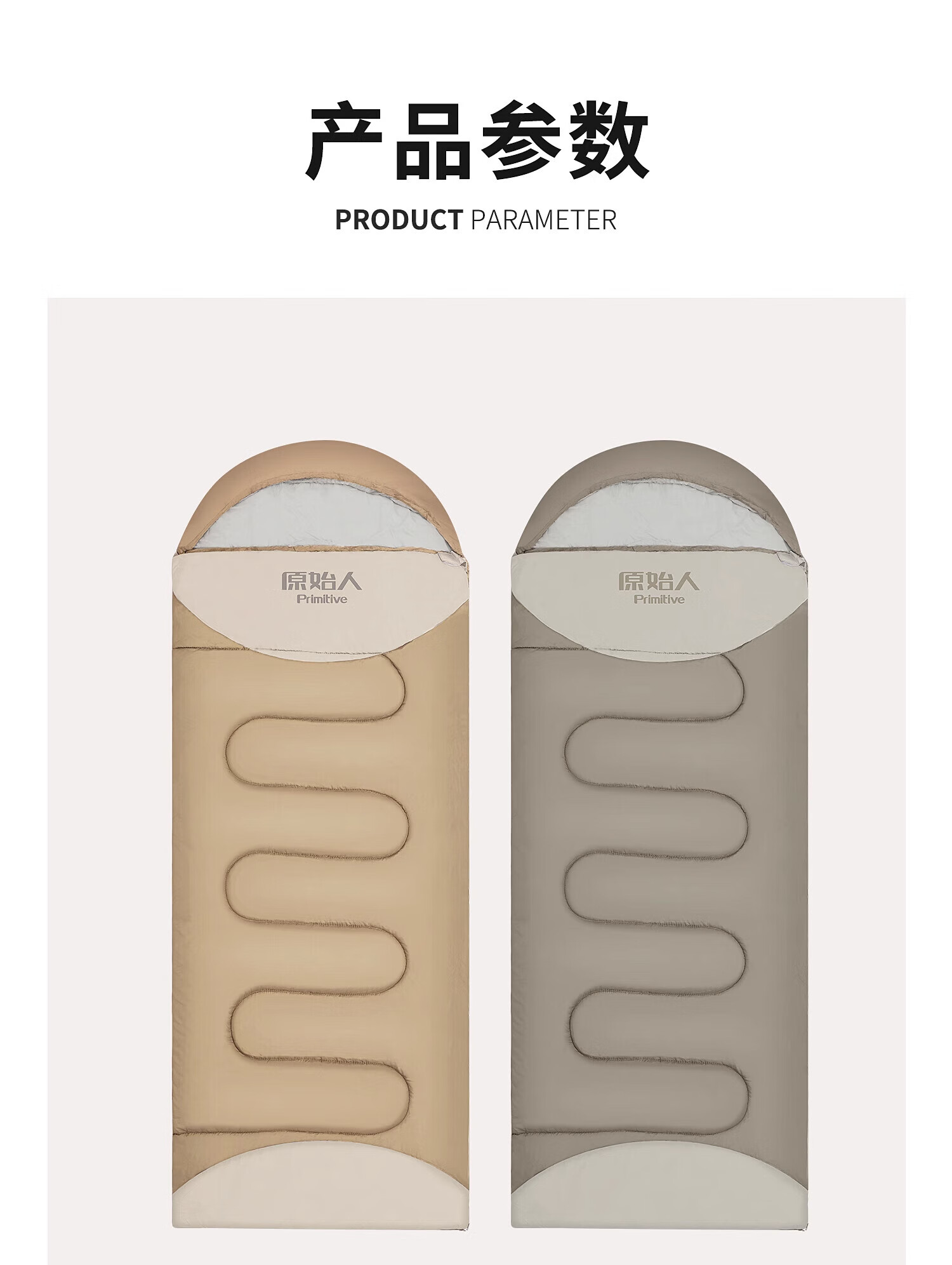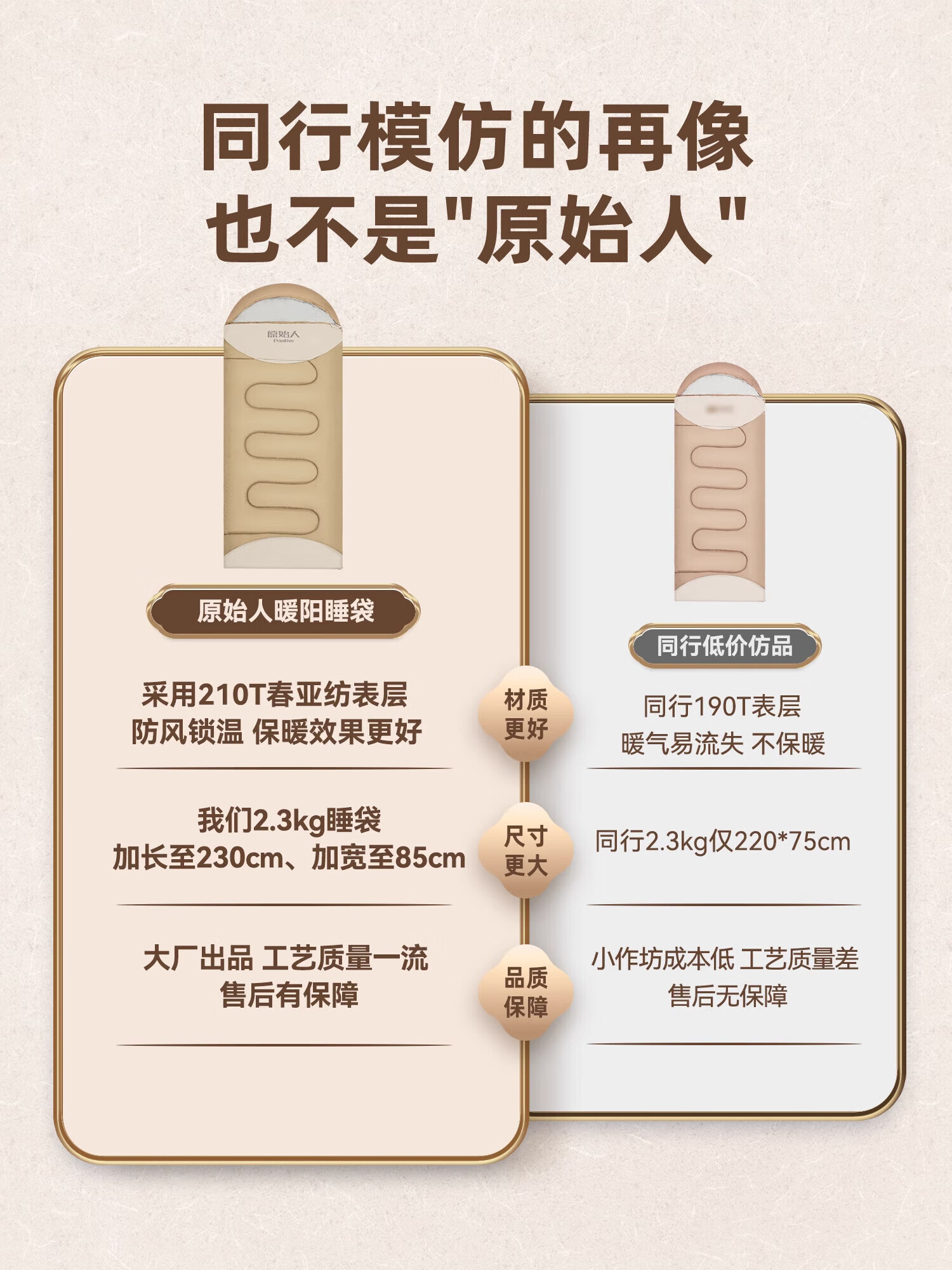 原始人睡袋成人户外露营大人冬季冬天加厚防寒被子隔脏四季通用款 1.3Kg【春秋款】卡其右