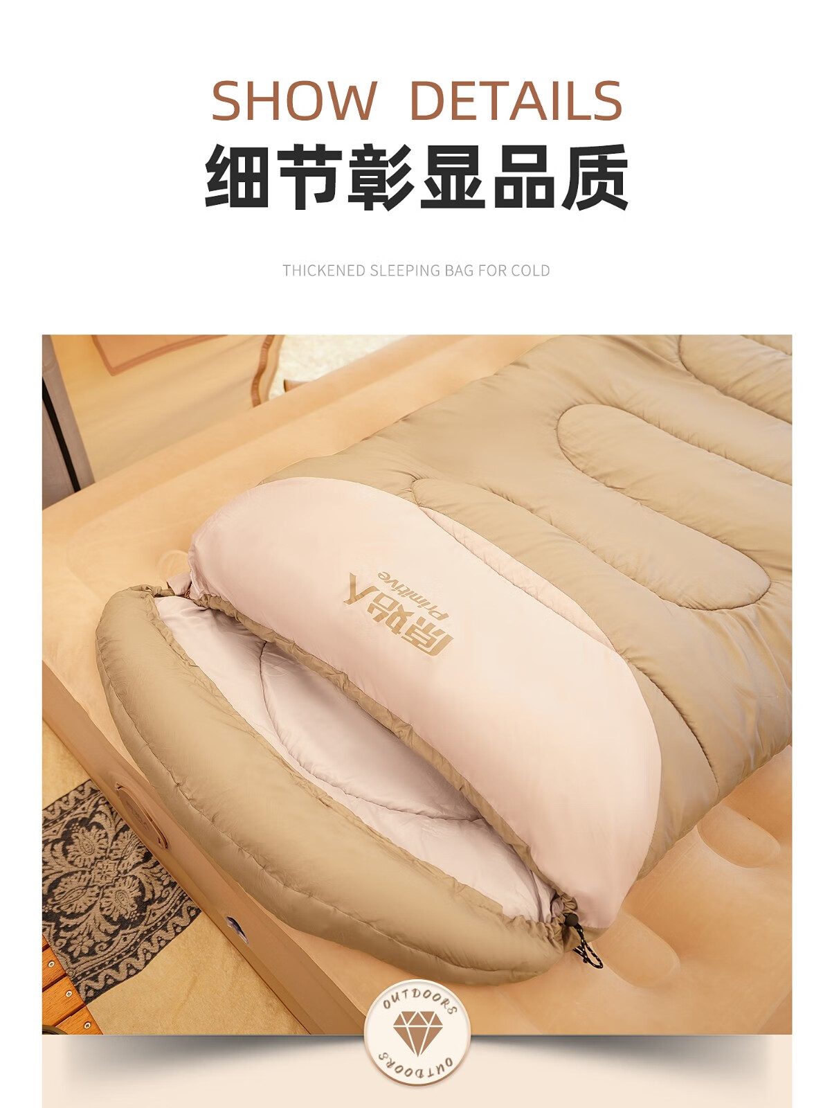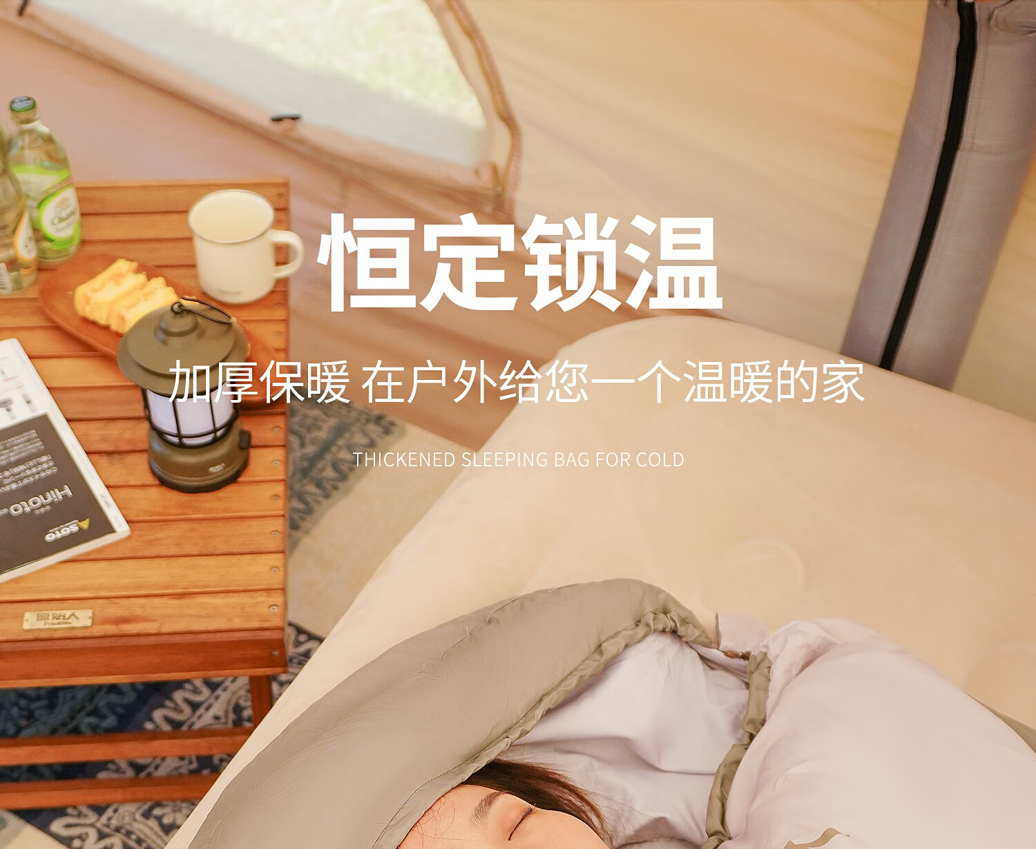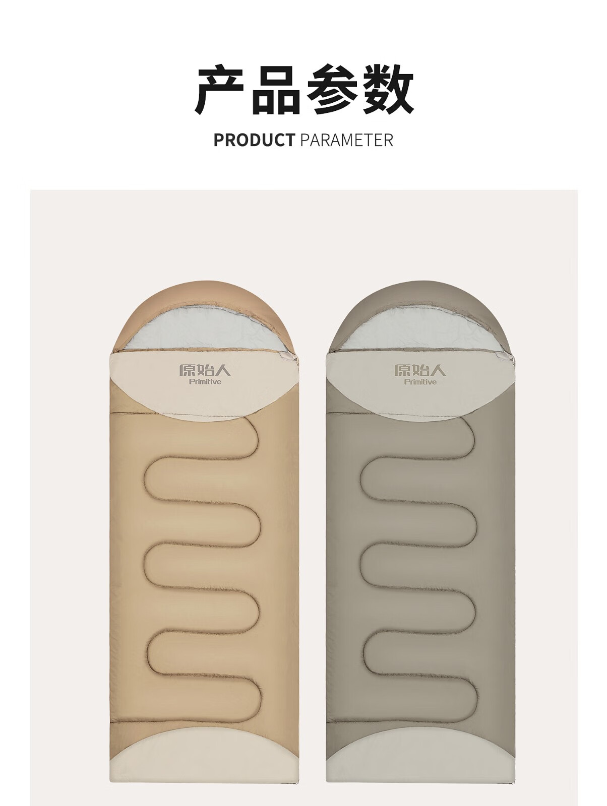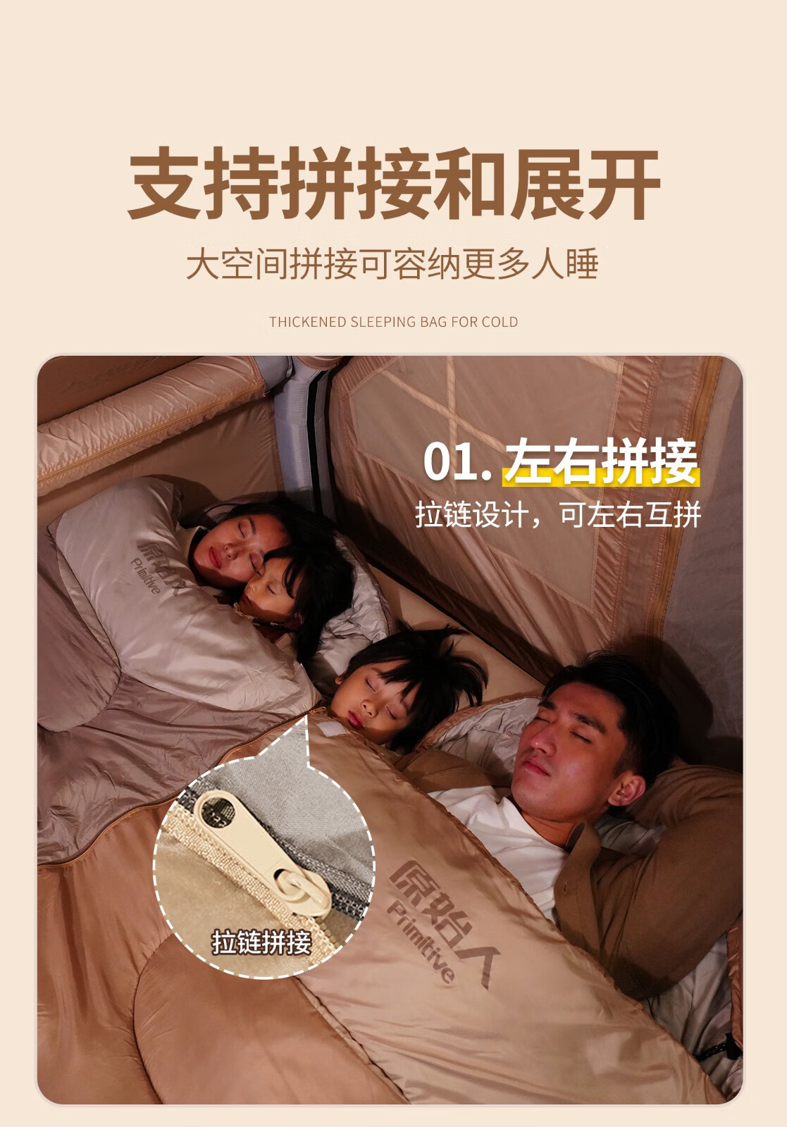 原始人睡袋户外露营大人冬季冬天加厚防寒被子便携式隔脏四季通用款 1.7Kg卡其右【适合6-15度】