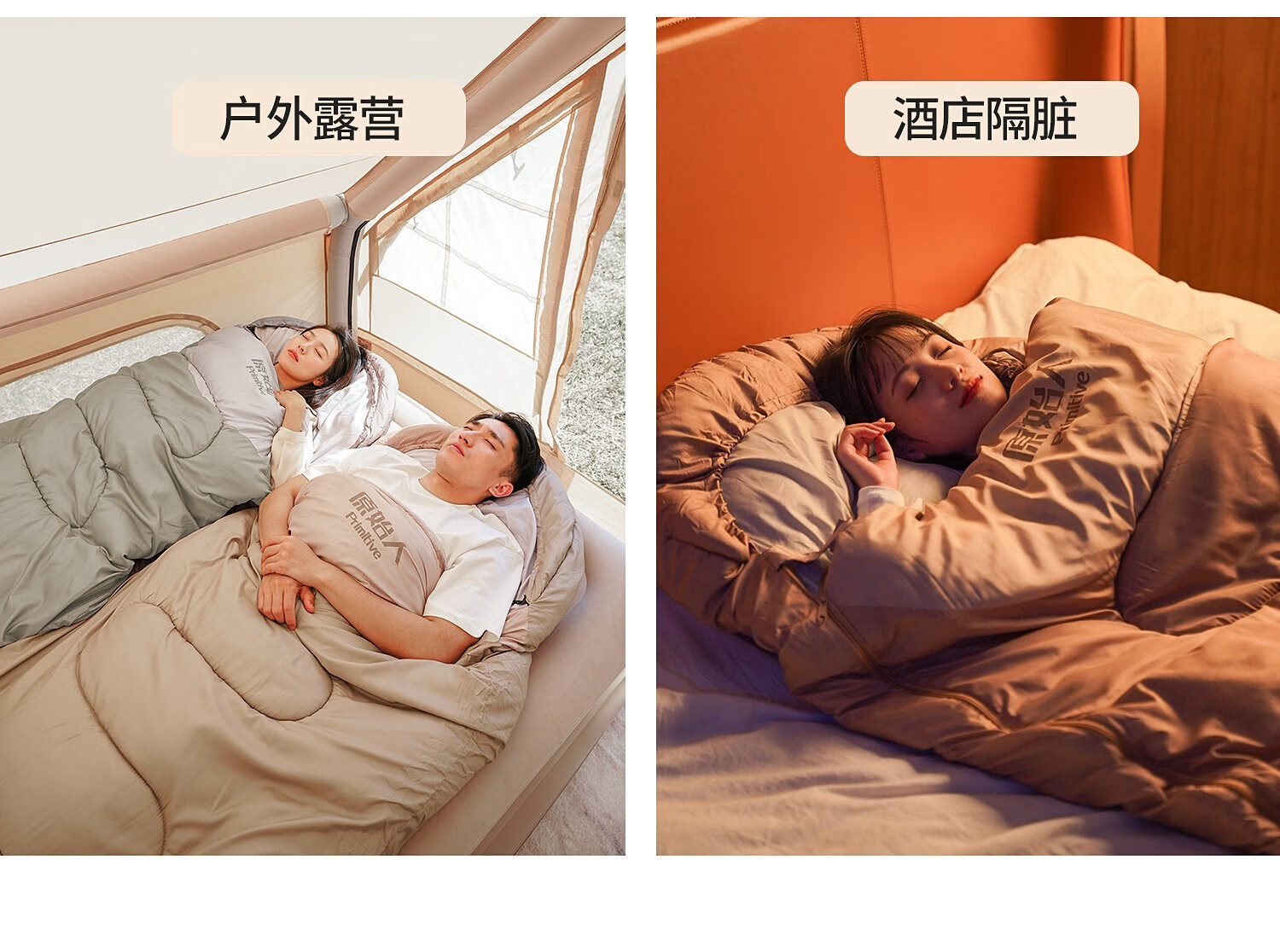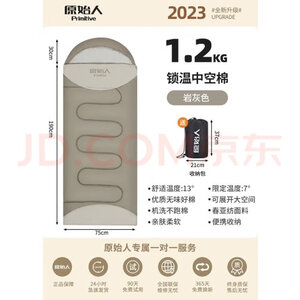 原始人睡袋成人户外露营大人冬季冬天加厚防寒被子隔脏四季通用款 1.3Kg岩灰左(适合12°)配收纳包