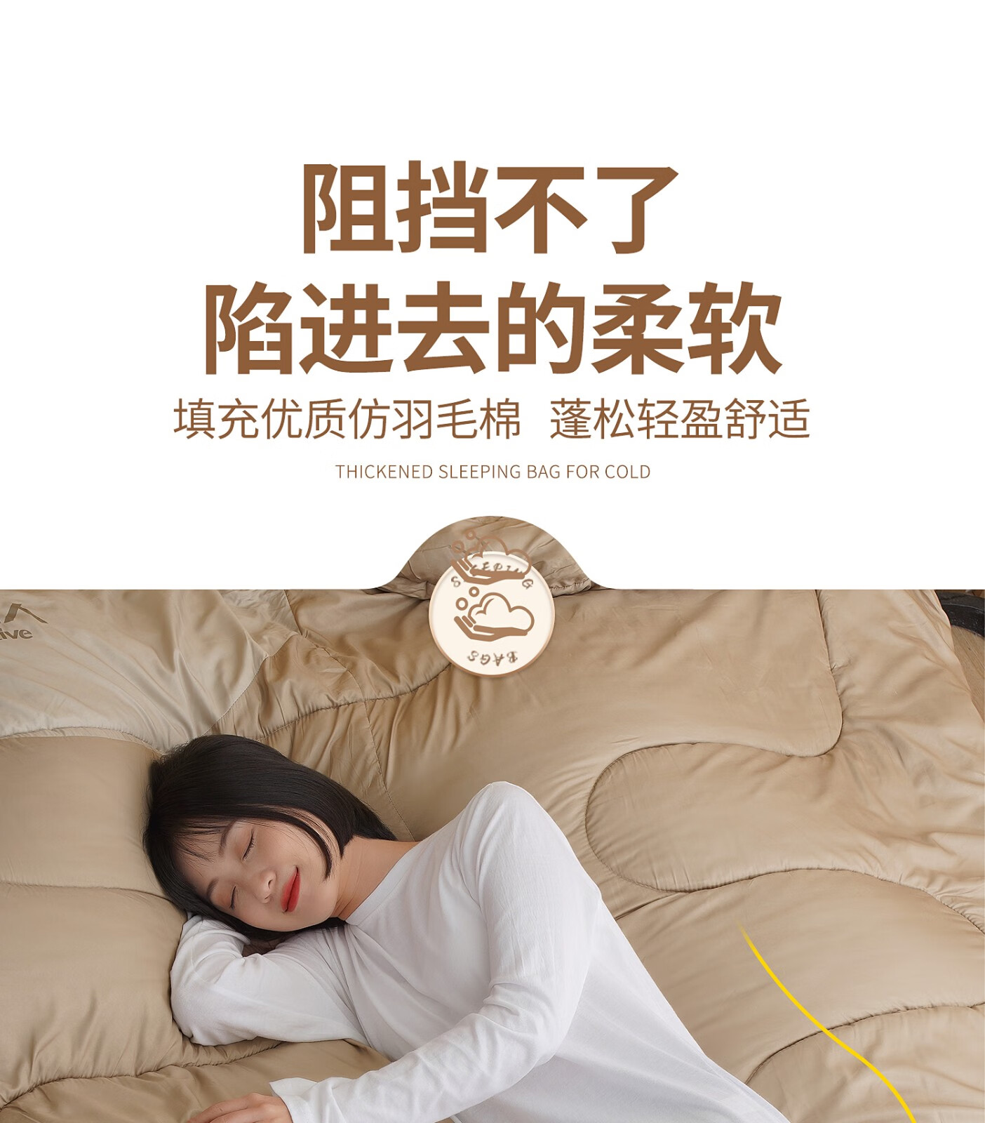 疆屿睡袋信封成人冬季加厚防寒户外四季通用款车用办公室午休睡被子 [卡其】1.5KG睡袋