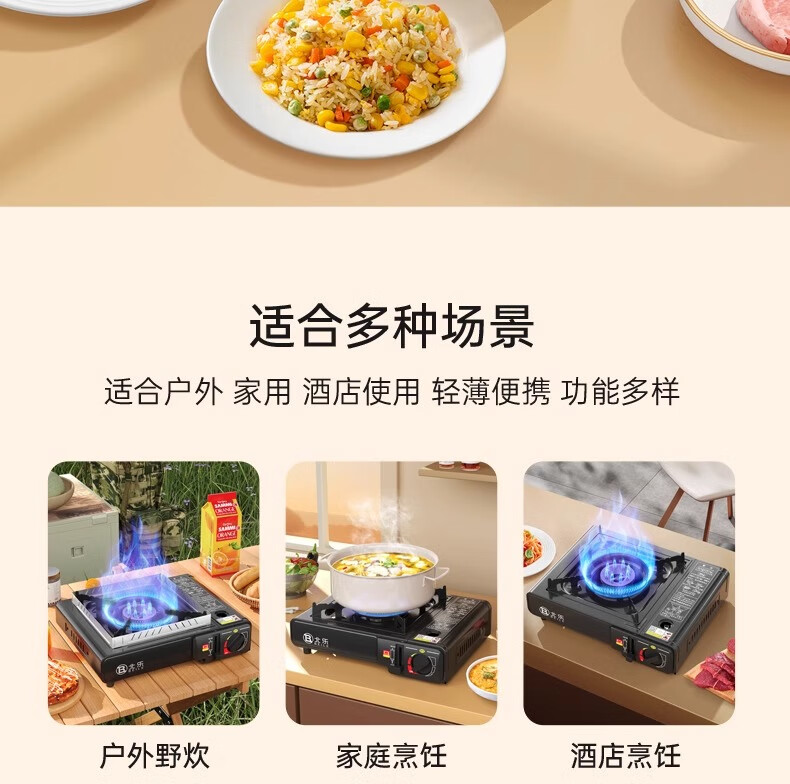 很好用 大煲小煲 小炒锅 煎锅 火力都够用,可以调节 根据炊具的大小调节 不超过大空口最安全 用完每次必须收起来气罐 防止泄露 不放在热量高的地方 用的时候底下最好添加隔热板 不要直接接触台面 防止烫坏台面
